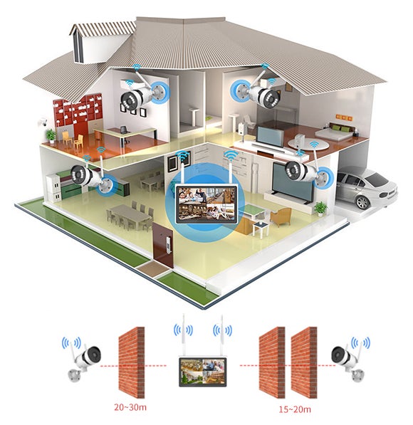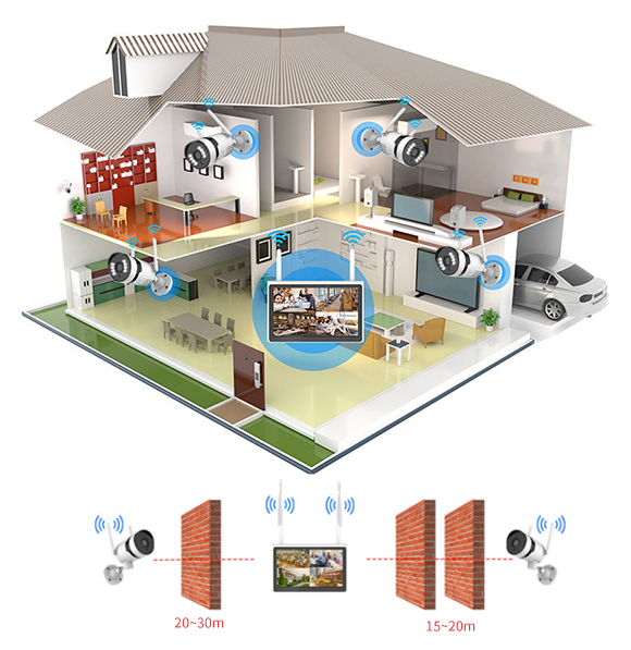 レコーダーの電源を入れて自宅のWi-Fiに接続します。その後、各カメラの電源を入れると、自動的にレコーダーとペアリングを行い、監視を開始します。
