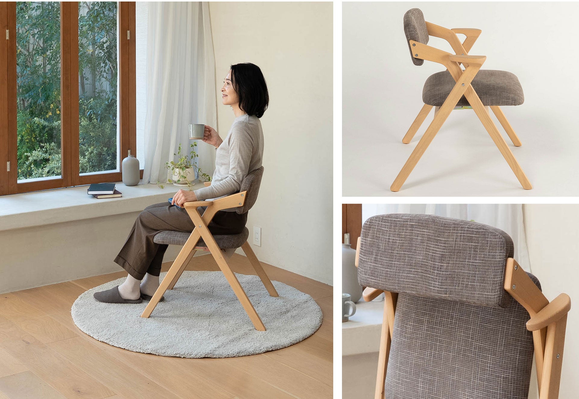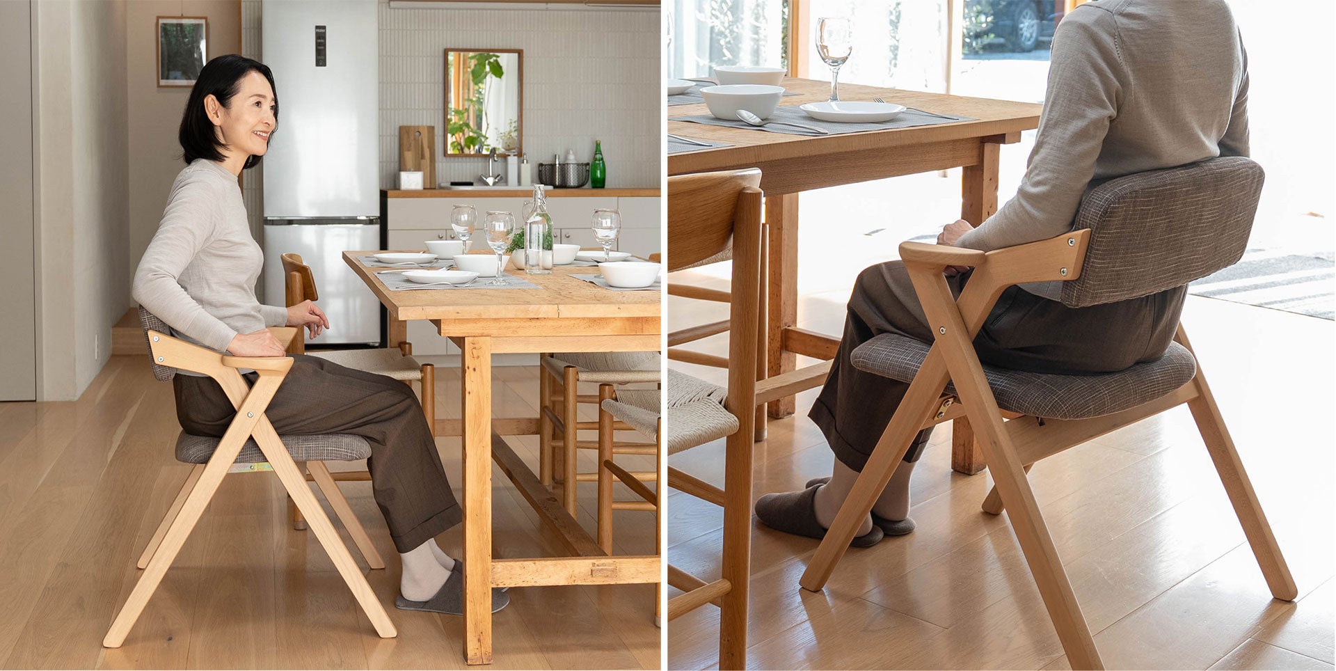 食べることも、くつろぐことも、無理なく続けられる。「食を楽しむための椅子【みのり】折りたたみタイプ」は、年齢や体格を問わず、誰にとっても心地よい“食の時間”を支えます。機能性と上質な佇まいを兼ね備えたユニバーサルデザインの折りたたみチェアとして、暮らしの質を一段引き上げる新たな選択肢をご提案します。