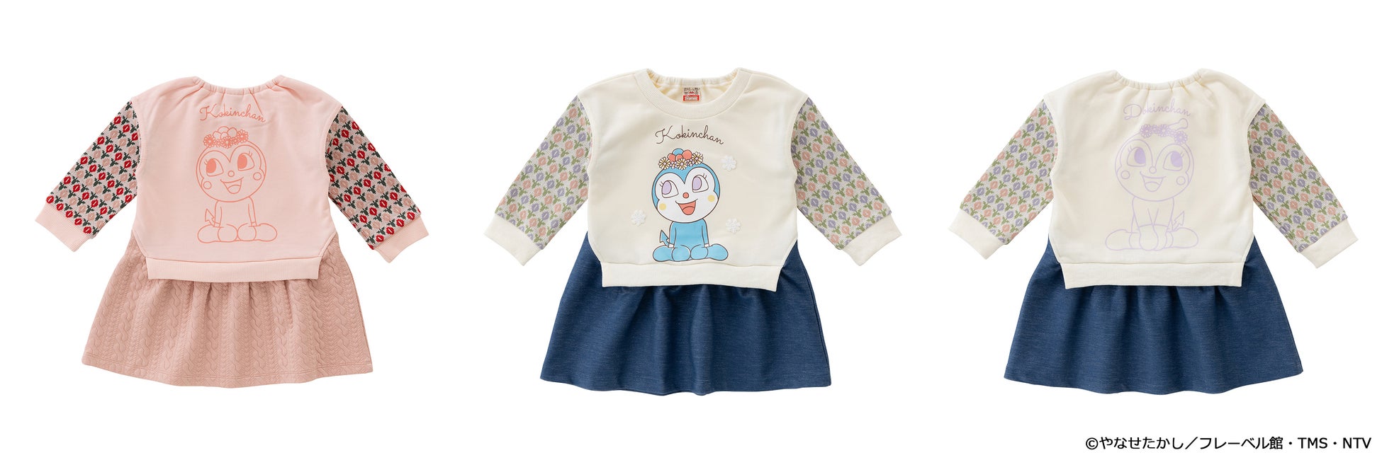株式会社バンダイ ファッションブランド事業部では、子どもたちに人気のテレビアニメ「それいけ!アンパンマン」の子ども服ブランド「アンパンマンキッズコレクション」より、大きなアップリケと袖の配色がおしゃれな『袖配色ボーダートレーナー』(7,150円 税込)や花柄のジャガード生地が可愛い『ドキンちゃん コキンちゃん袖花柄ワンピース』(8,690円 税込)などをはじめとした冬の新作を2022年11月18日(金)より順次販売いたします。(発売元:株式会社バンダイ)