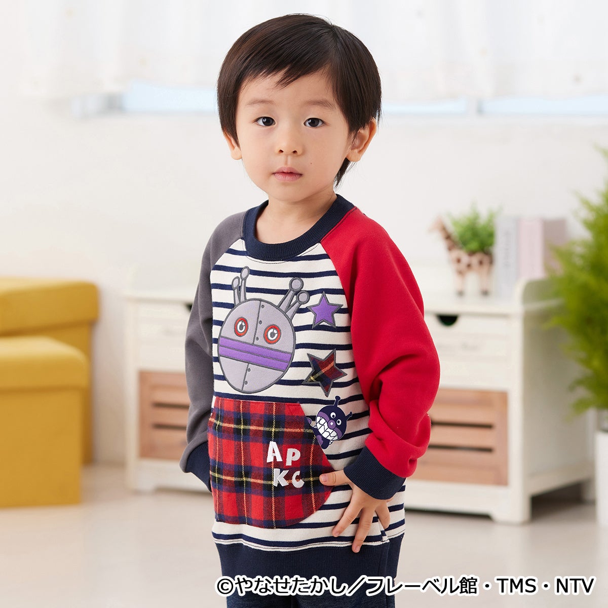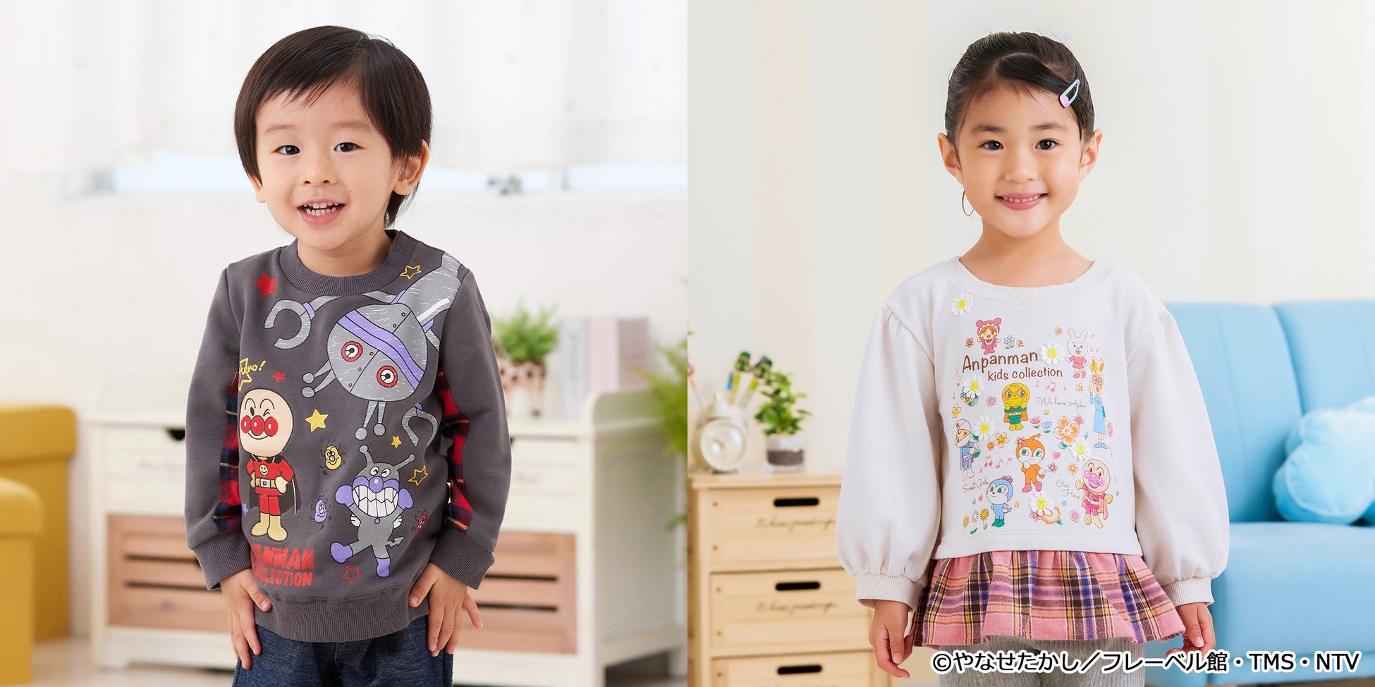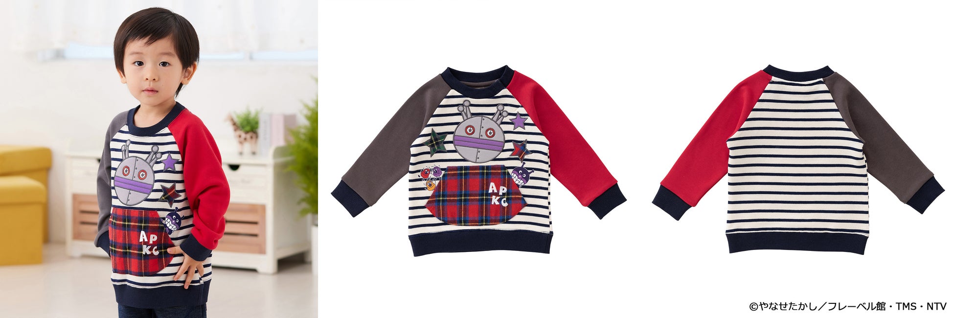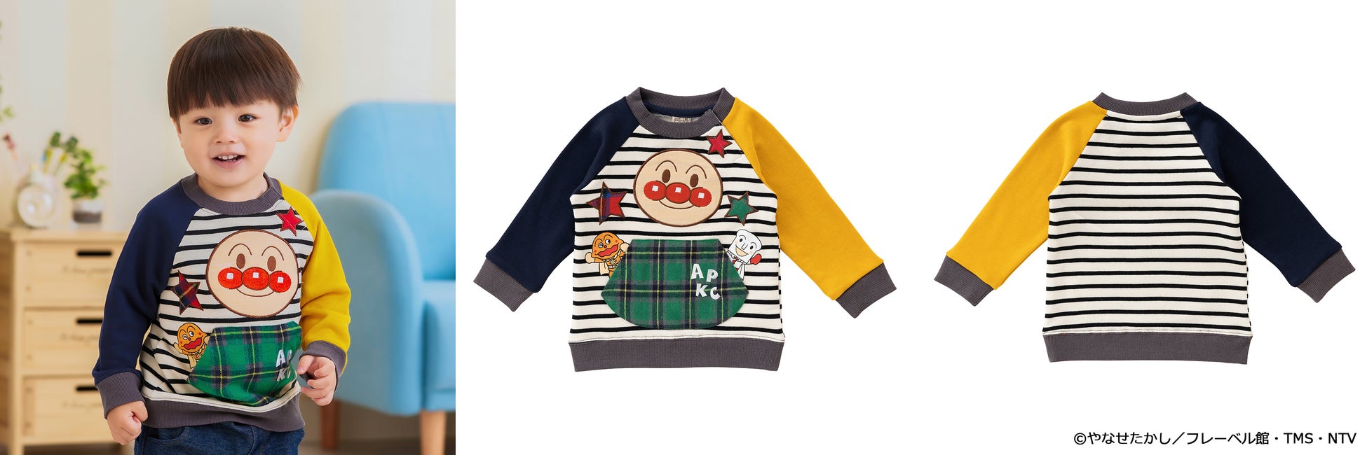 冬から春先まで使える!アンパンマンの子ども服ブランドから新作が多数登場!アンパンマンやだだんだんの大きなアップリケがかわいい「袖配色ボーダートレーナー」などがラインアップ