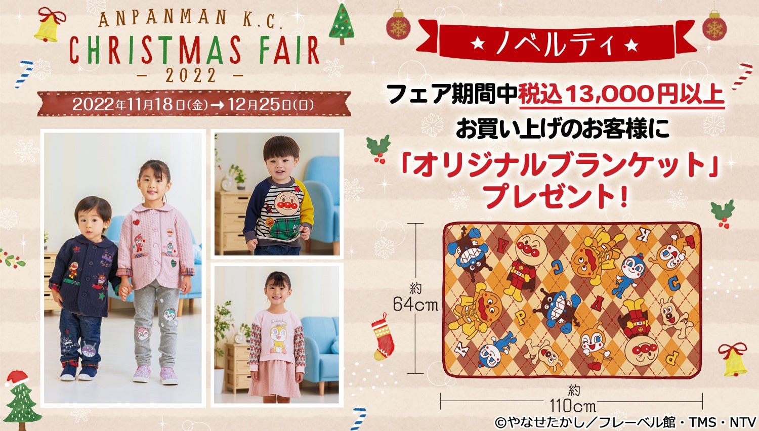 2022年11月18日(金)~2022年12月25日(日)の期間中、店頭およびバンダイナムコグループ公式通販サイト「プレミアムバンダイ内アンパンマンキッズコレクションオンラインショップ」にて13,000円(税込)以上お買い上げのお客様には「オリジナルブランケット」をプレゼント!