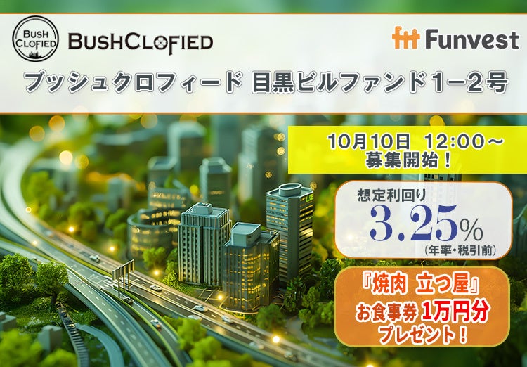 「未来をわかちあう投資」を提供する「Funvest(ファンベスト)」(以下、Funvest)は、「ブッシュクロフィード 目黒ビルファンド1-2号」(以下、本ファンド)の募集を10/10より開始しますので、お知らせいたします。