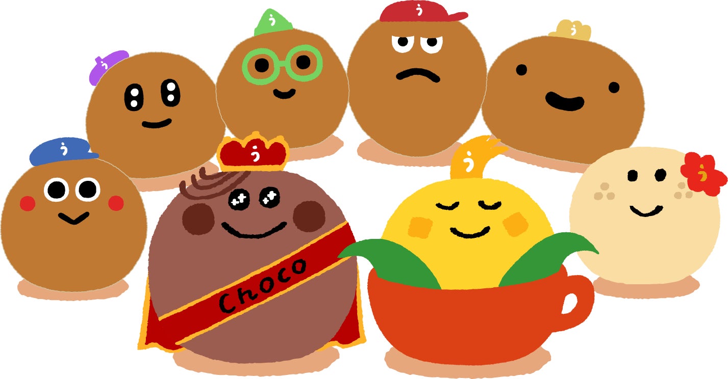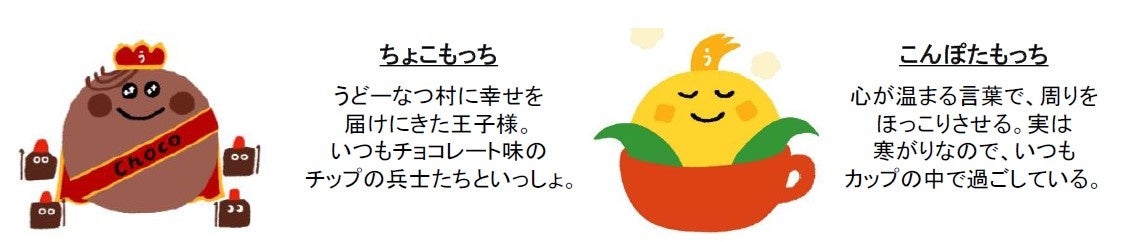 ≪公式キャラクター「うどーなつ村のなかまたち」に「ちょこもっち」「こんぽたもっち」が登場!≫
