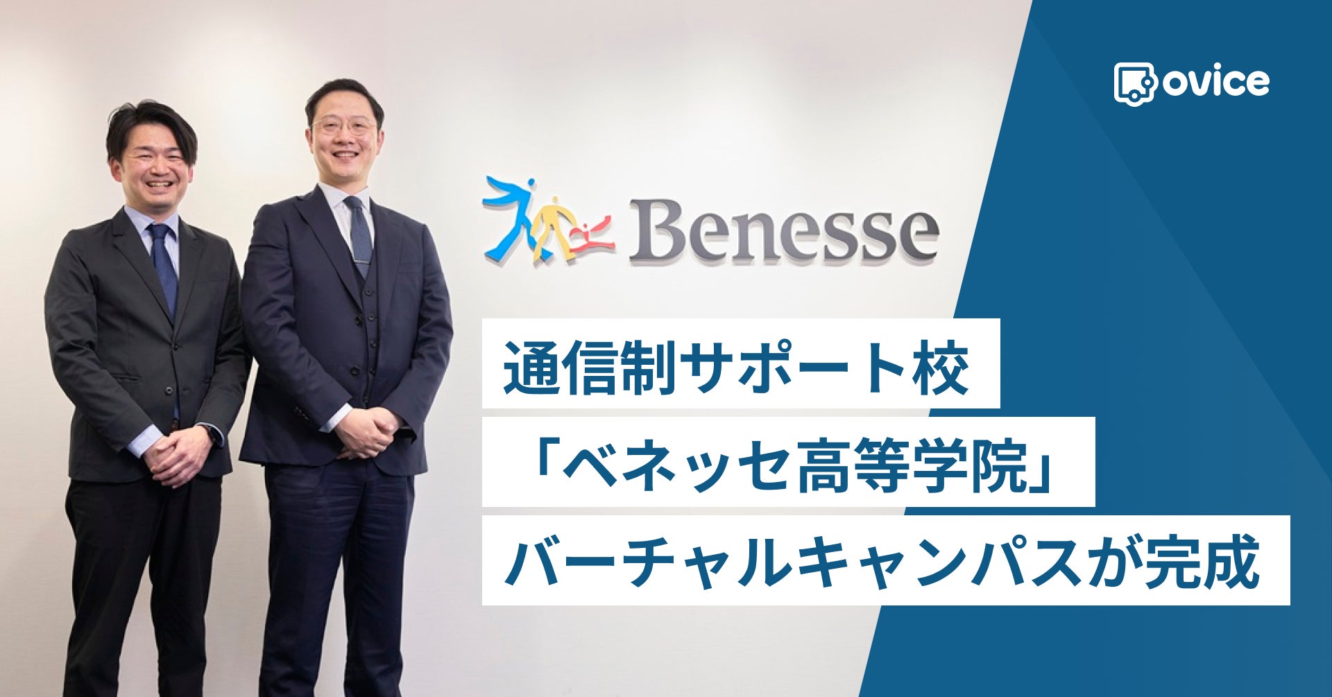 oVice株式会社(本社:石川県七尾市、代表取締役CEO:ジョン・セーヒョン)のバーチャル空間「ovice(オヴィス)」を活用し、株式会社ベネッセコーポレーション(以下、ベネッセ)が運営する不登校の子どもも安心して通える通信制サポート校「ベネッセ高等学院」のバーチャルキャンパスが完成。その内容を紹介した導入事例記事を公開したことをお知らせします。