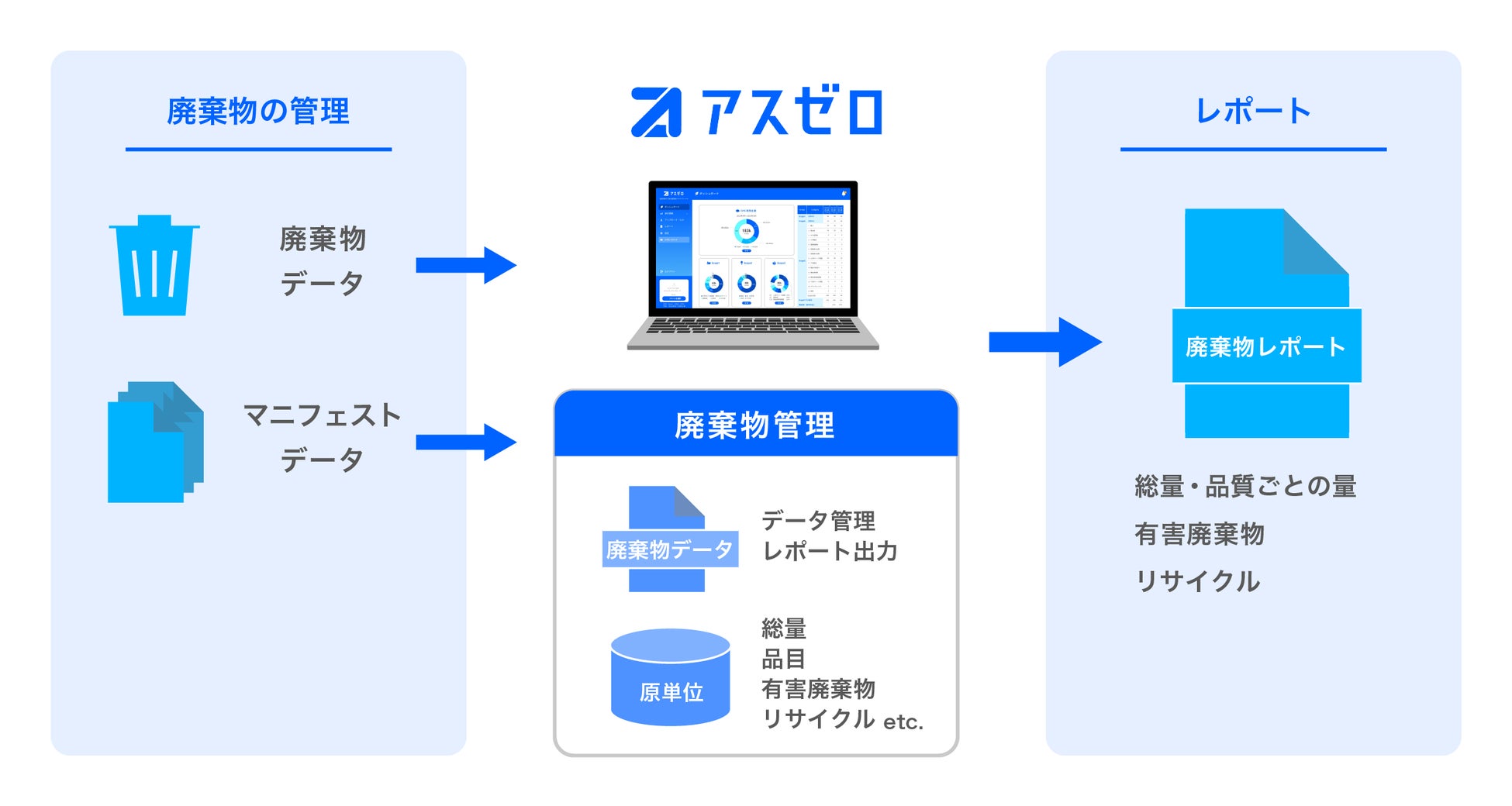 アスエネ株式会社(本社:東京都港区、代表取締役CEO:西和田 浩平、以下「当社」)の運営するCO2排出量見える化・削減・報告・報告クラウドサービス「アスゼロ」は、廃棄物管理機能をリリースしました。「アスゼロ」では、CO2排出量だけでなく、水管理、廃棄物管理のデータを簡単に見える化することが可能となります。