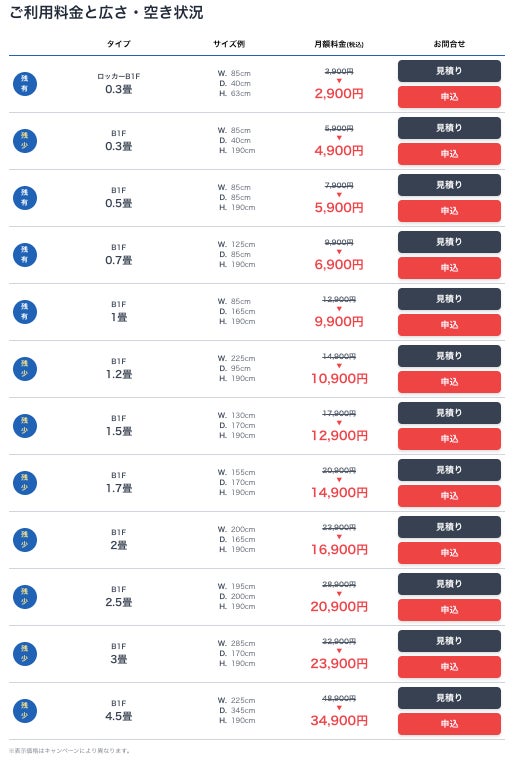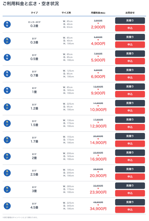 - 部屋タイプとサイズ、月額料金はこちら