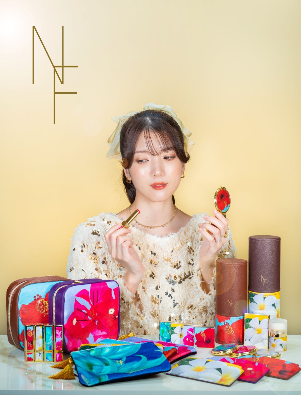 「Solistella」の新商品として、コンパクトヘアブラシやミニヘアアイロンなどのビューティーグッズをご用意しています。また、「ナカモトフウフ」とのコラボ商品は沖縄の花をテーマとしたコスメをはじめ、メイクブラシやコームなどもご用意しています。
