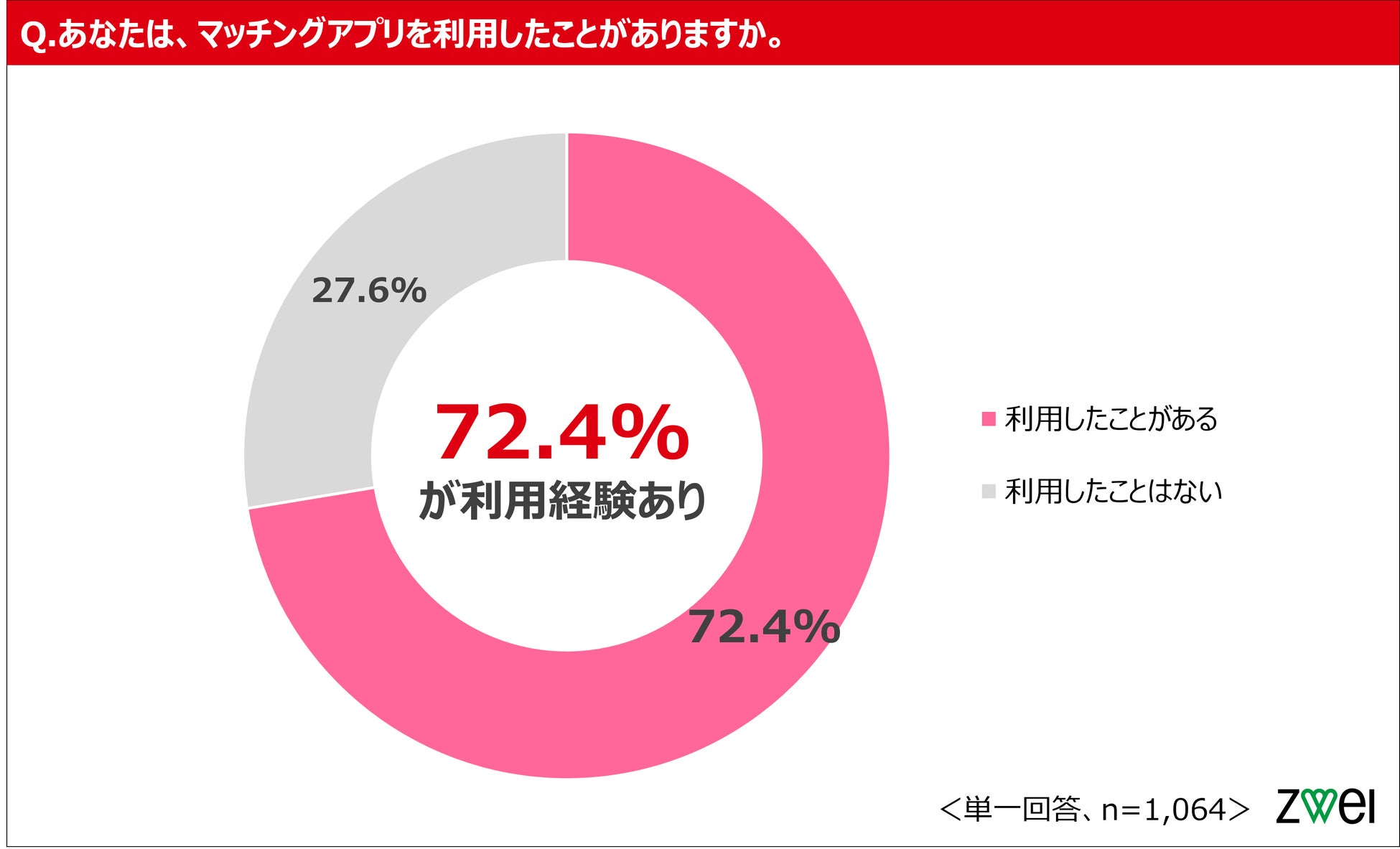 業界最多・全国54店舗のネットワークを持つ大手結婚相談所の株式会社ZWEI(ツヴァイ)(本社:東京都中央区、代表取締役社長:橋爪 みずほ、以下「ZWEI」)は、現会員男女1,064名を対象に、マッチングアプリの利用経験と「アプリ疲れ」に関する実態調査を実施しました。
