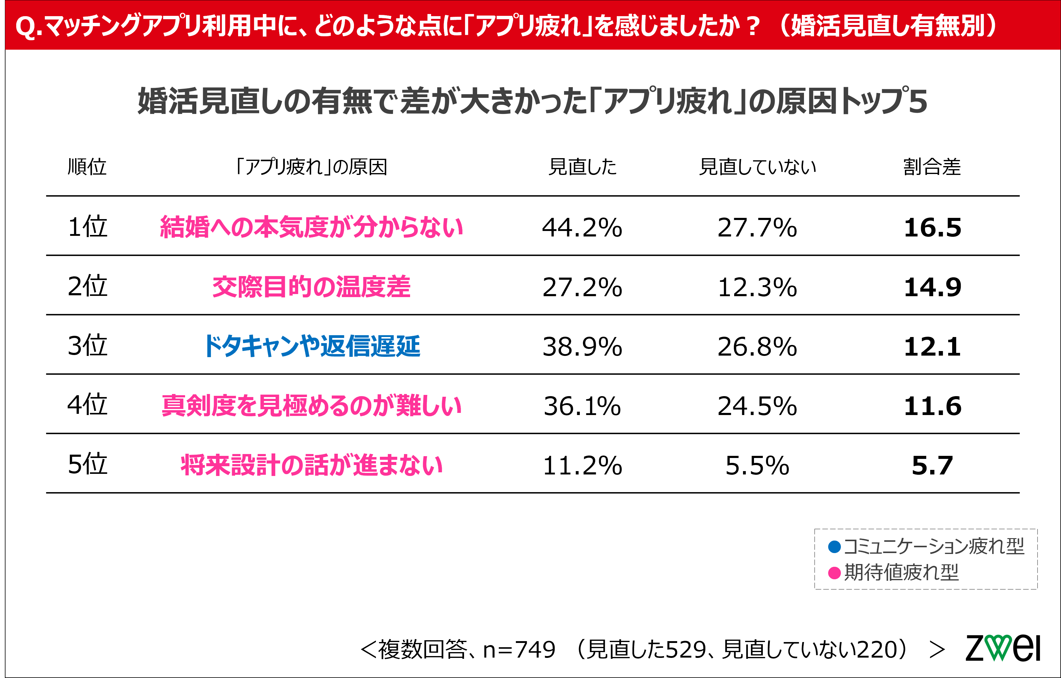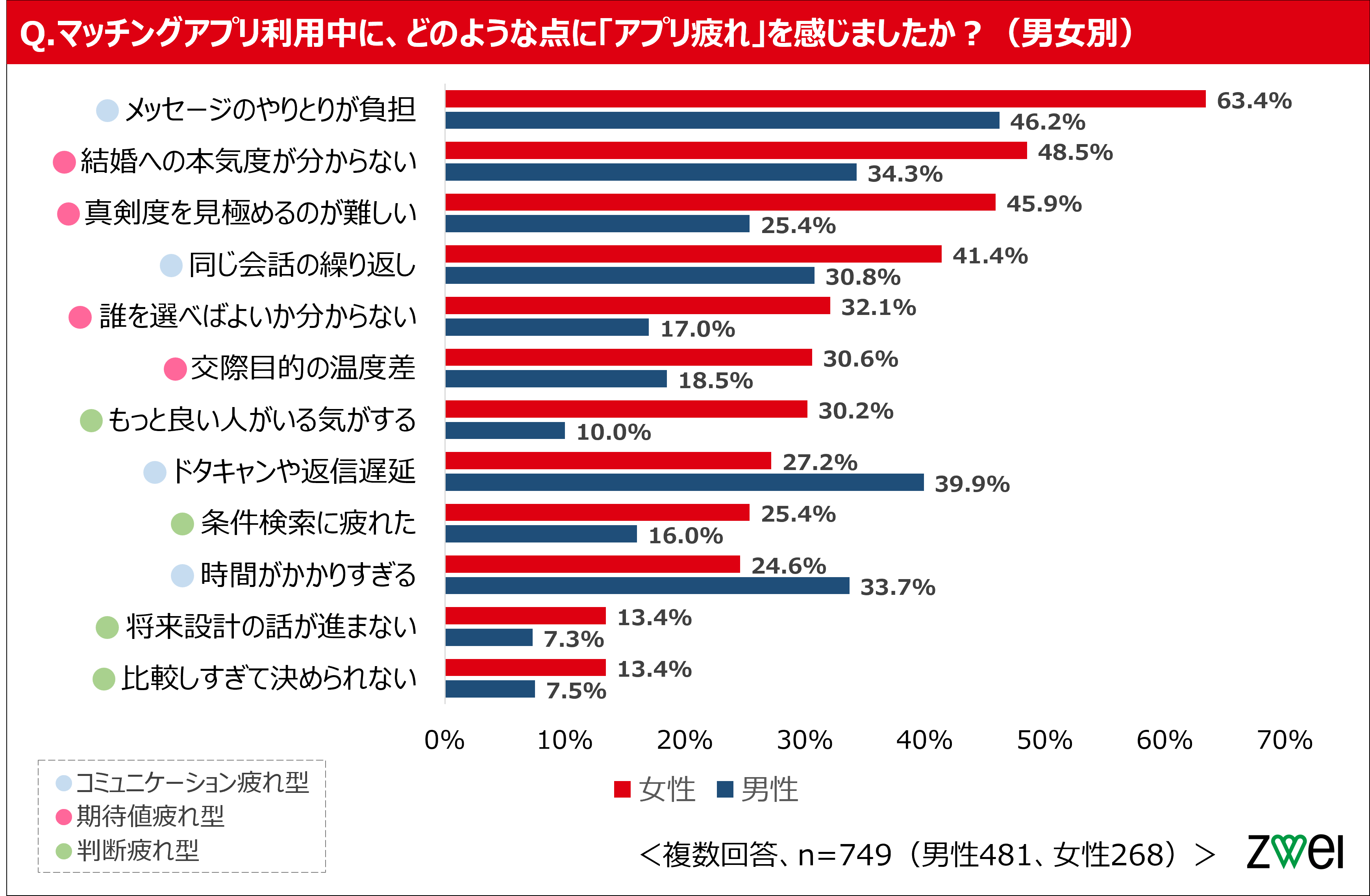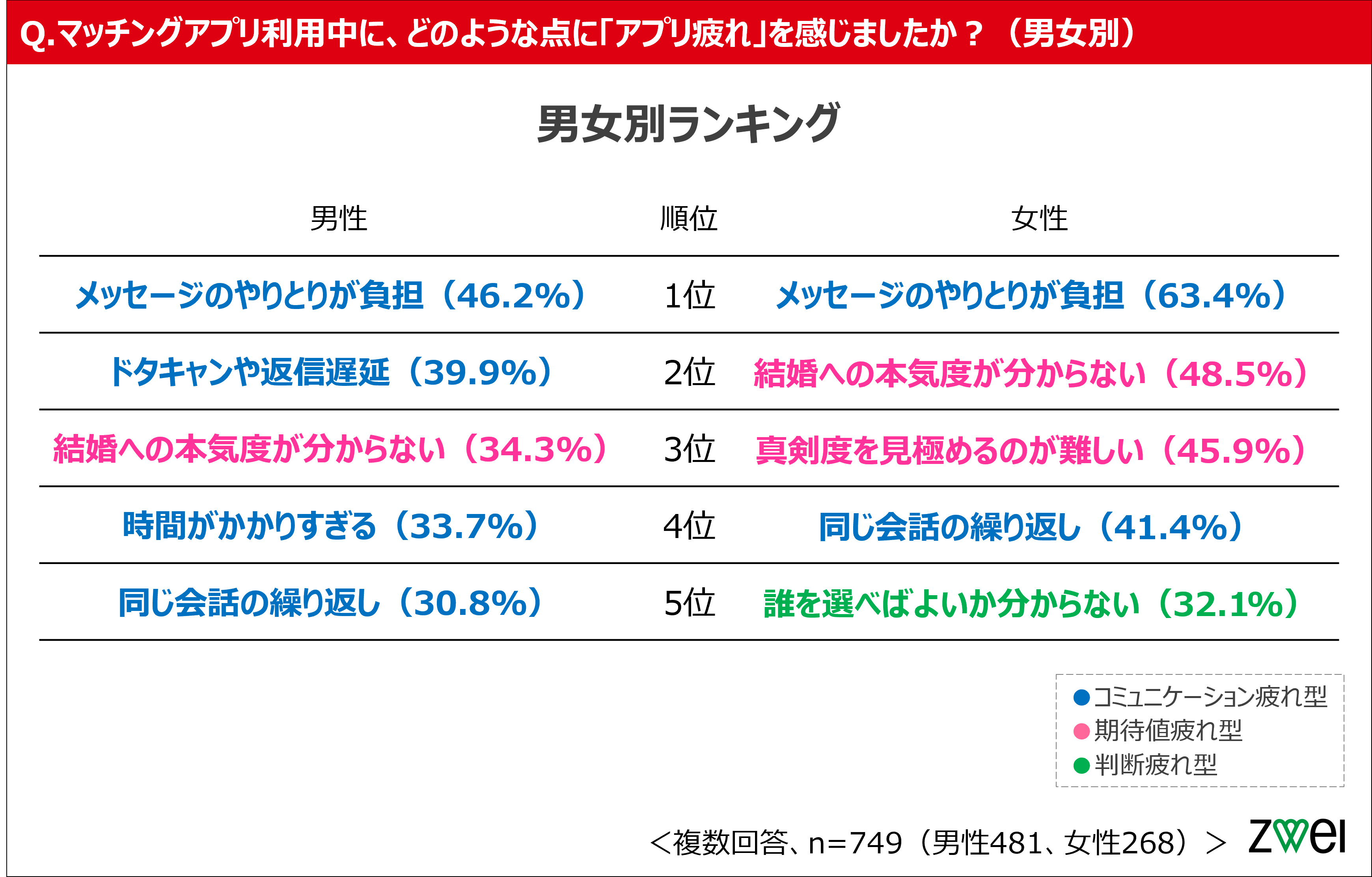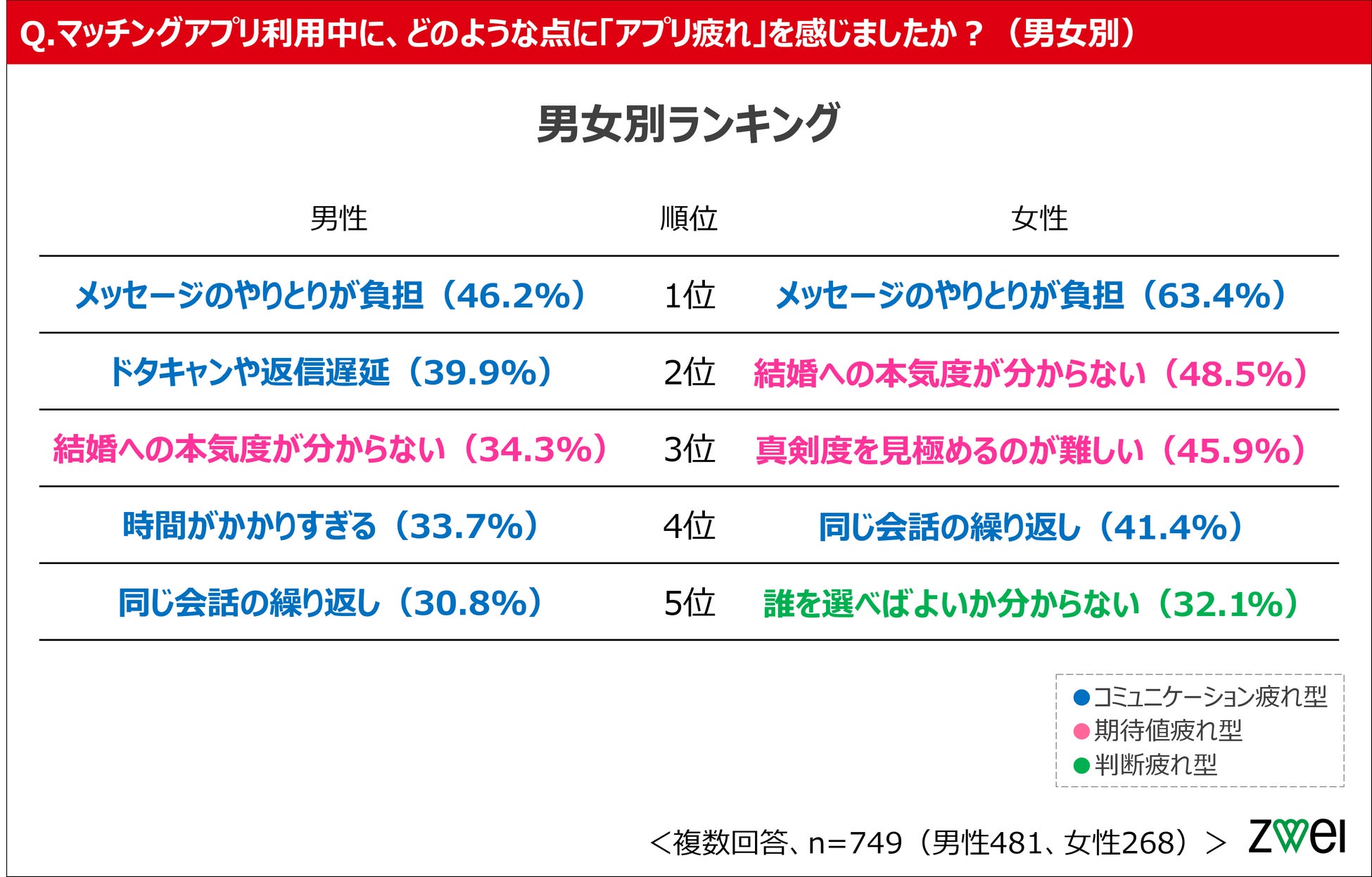 「アプリ疲れ」の傾向に男女差。男性は「コミュニケーション量」、女性は「本気度」に起因する疲れが顕著