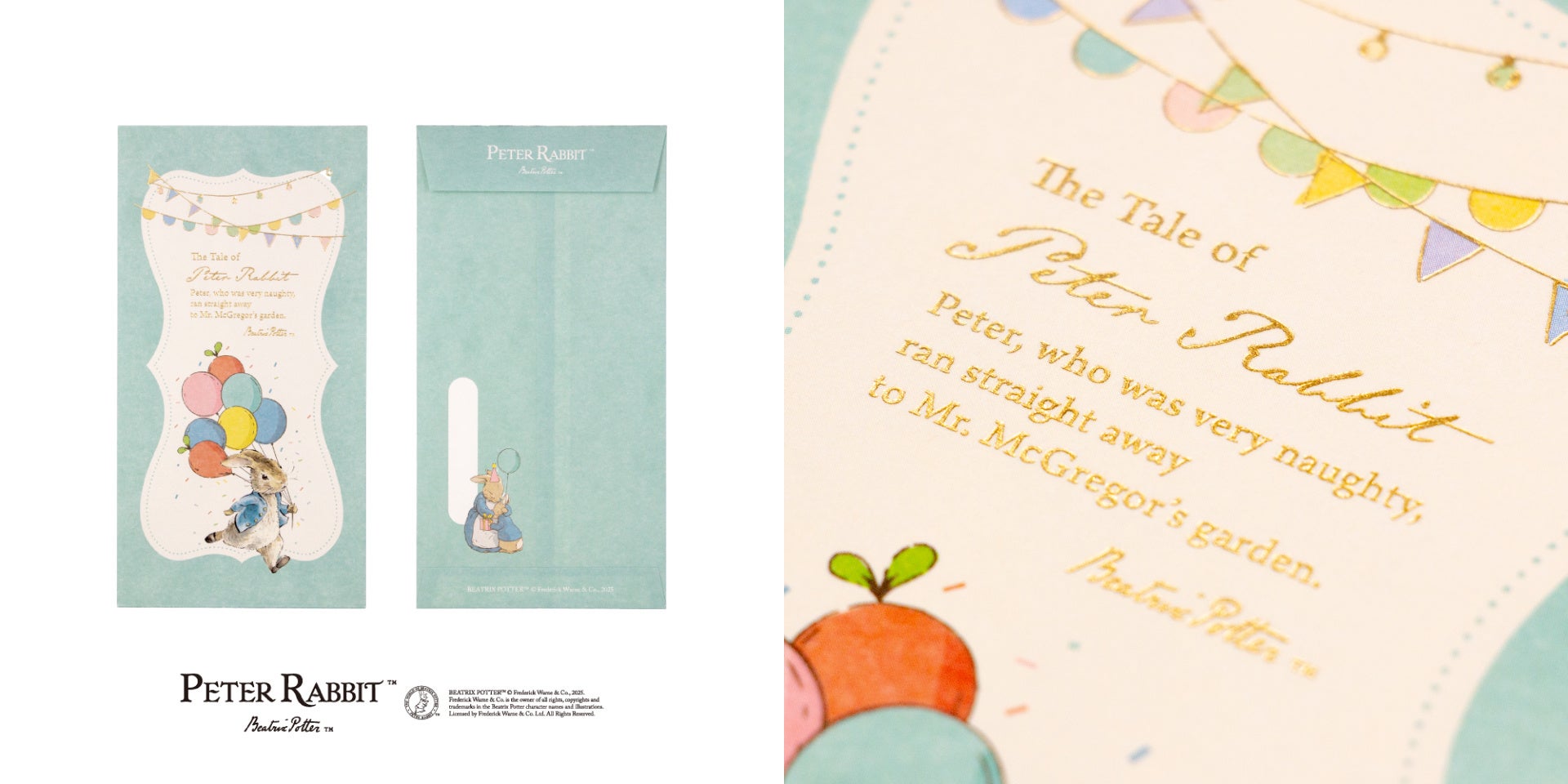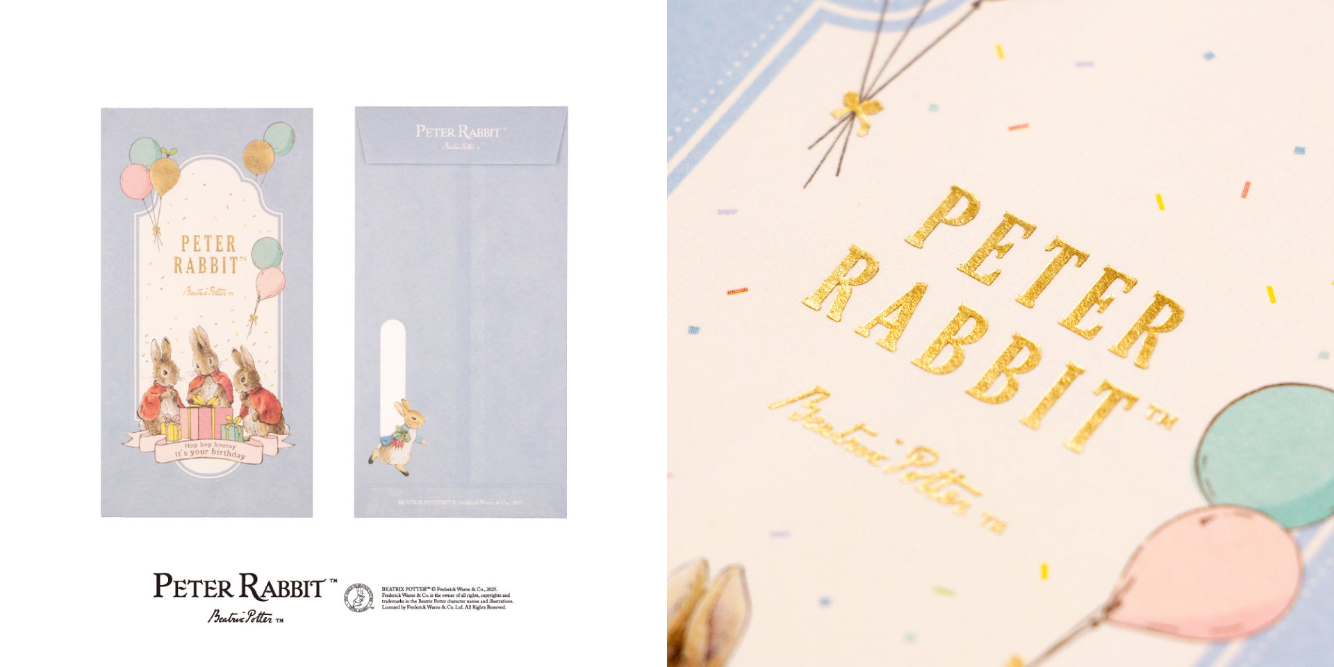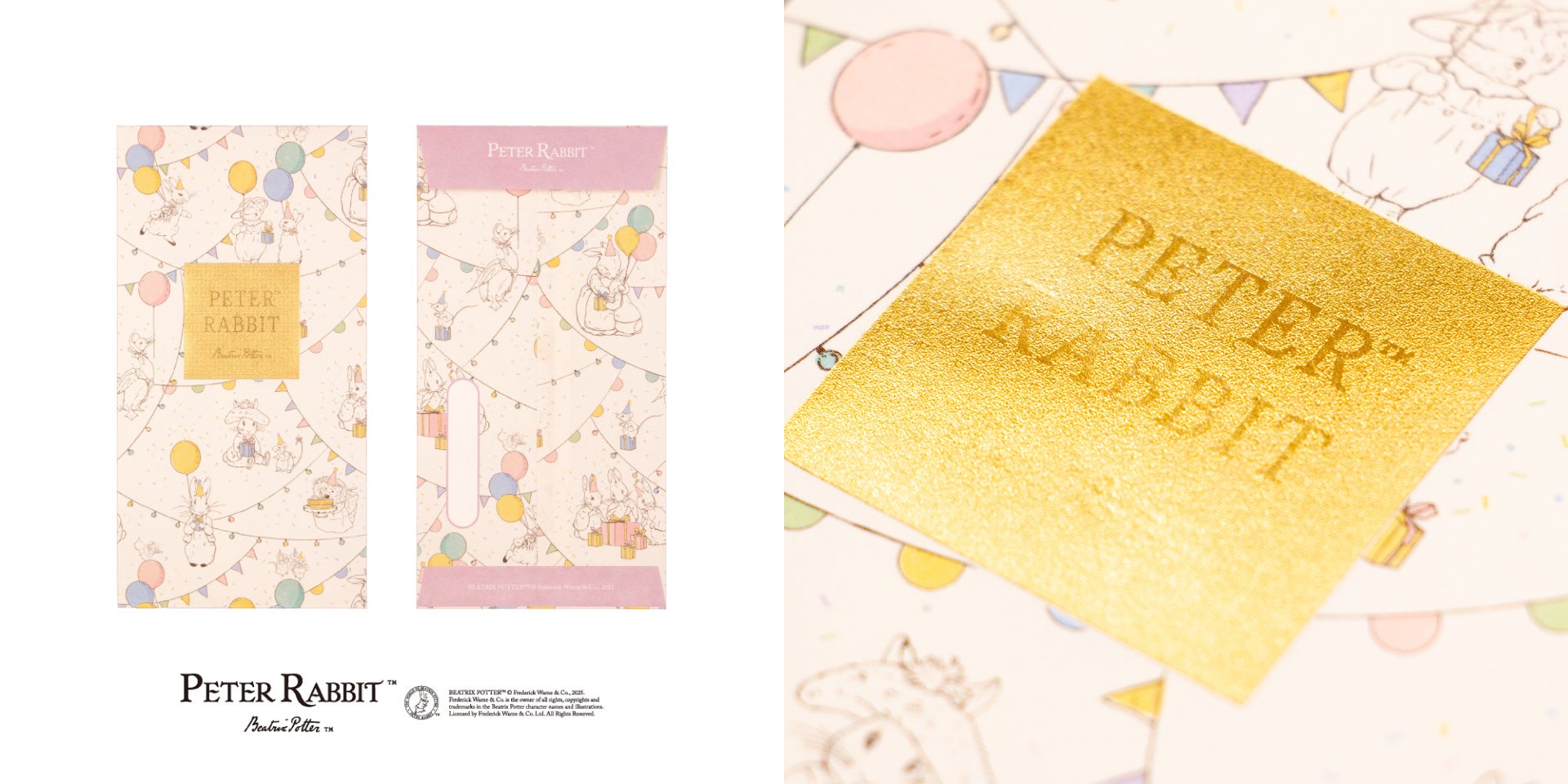 パーティーをテーマに箔押しをあしらった上品でかわいらしいピーターラビット™のし袋が登場!