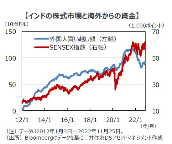 三井住友DSアセットマネジメント株式会社(代表取締役社長 兼 CEO:猿田隆)は、経済イベントや市場動向に関するマーケットレポートを日々発行しております。このたび、マーケットレポート「『外国人買い』の再開で最高値を更新したインド株」を2022年11月30日に発行いたしましたので、お知らせいたします。