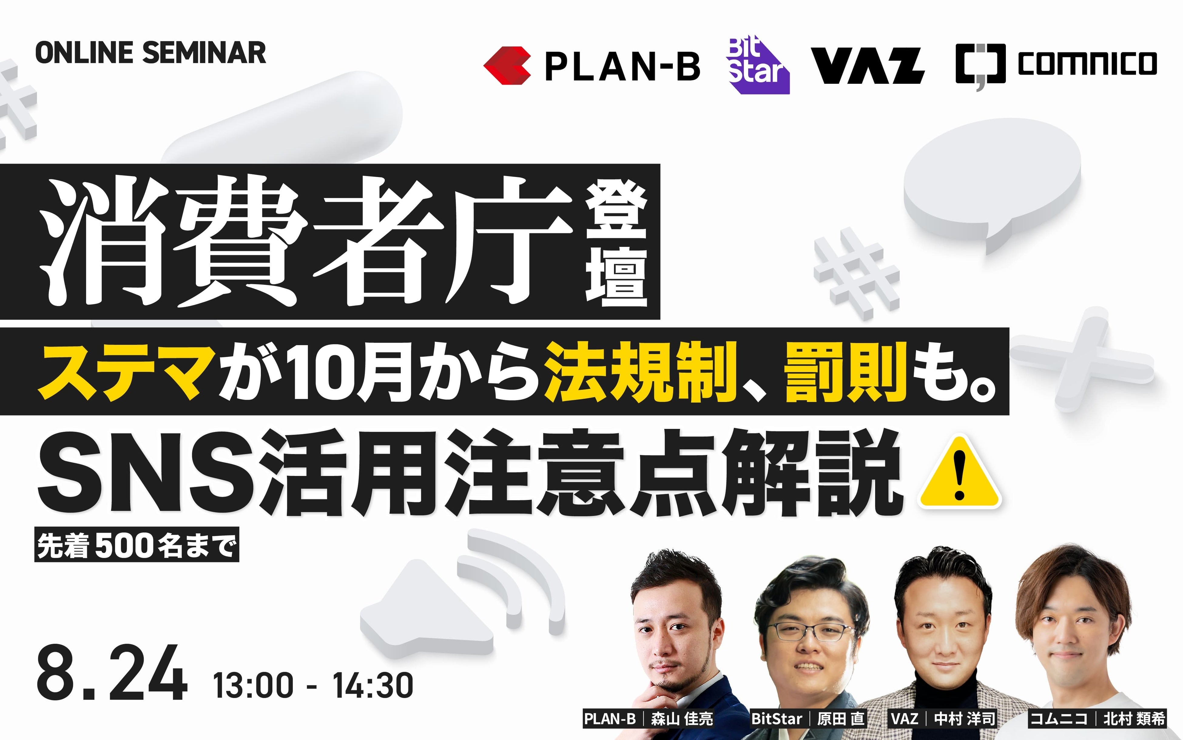 【消費者庁登壇】ステマが10月から法規制、罰則も。SNS活用注意点解説!│PLAN-B×BitStar×VAZ×コムニコ
