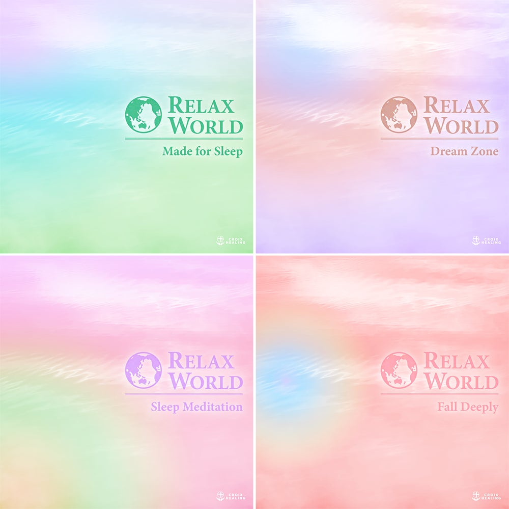 バックグラウンドに溶け込むような音楽で、心地よい眠りに誘う『RELAX WORLD -Made for Sleep-』、穏やかなアンビエント音楽で快適な眠りへと誘う『RELAX WORLD -Dream Zone-』、空間に溶け込む美しいサウンドでゆったりと時間を演出する『RELAX WORLD -Sleep Meditation-』、深く、そして穏やかに眠りへと誘う『RELAX WORLD -Fall Deeply-』と、最新作もシリーズ共通のテーマでもある心と身体に安らぎを与える透き通るような清涼感に溢れるサウンドで、ストレス解消や疲労回復、瞑想音楽、リラックス・タイムにお薦めの作品です。