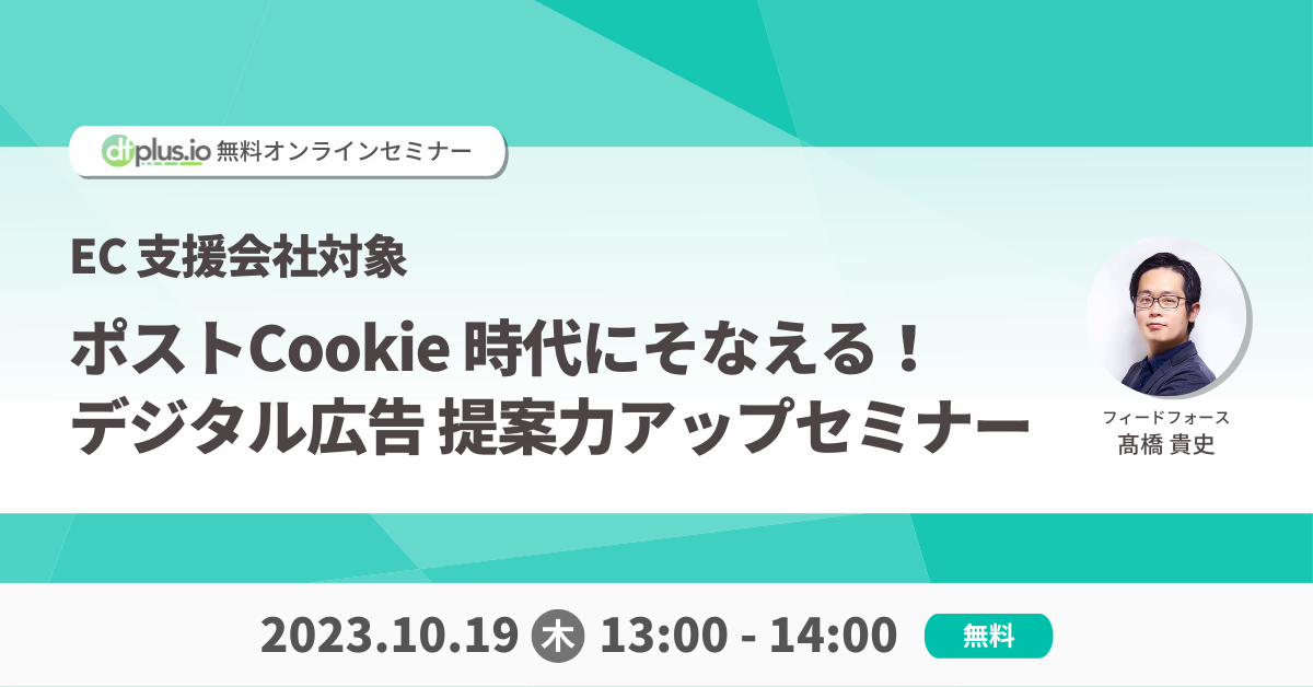 【10/19(木) 13:00~ 開催】dfplus.io、EC 支援会社を対象に「ポストCookie 時代にそなえる!デジタル広告 提案力アップセミナー」を開催