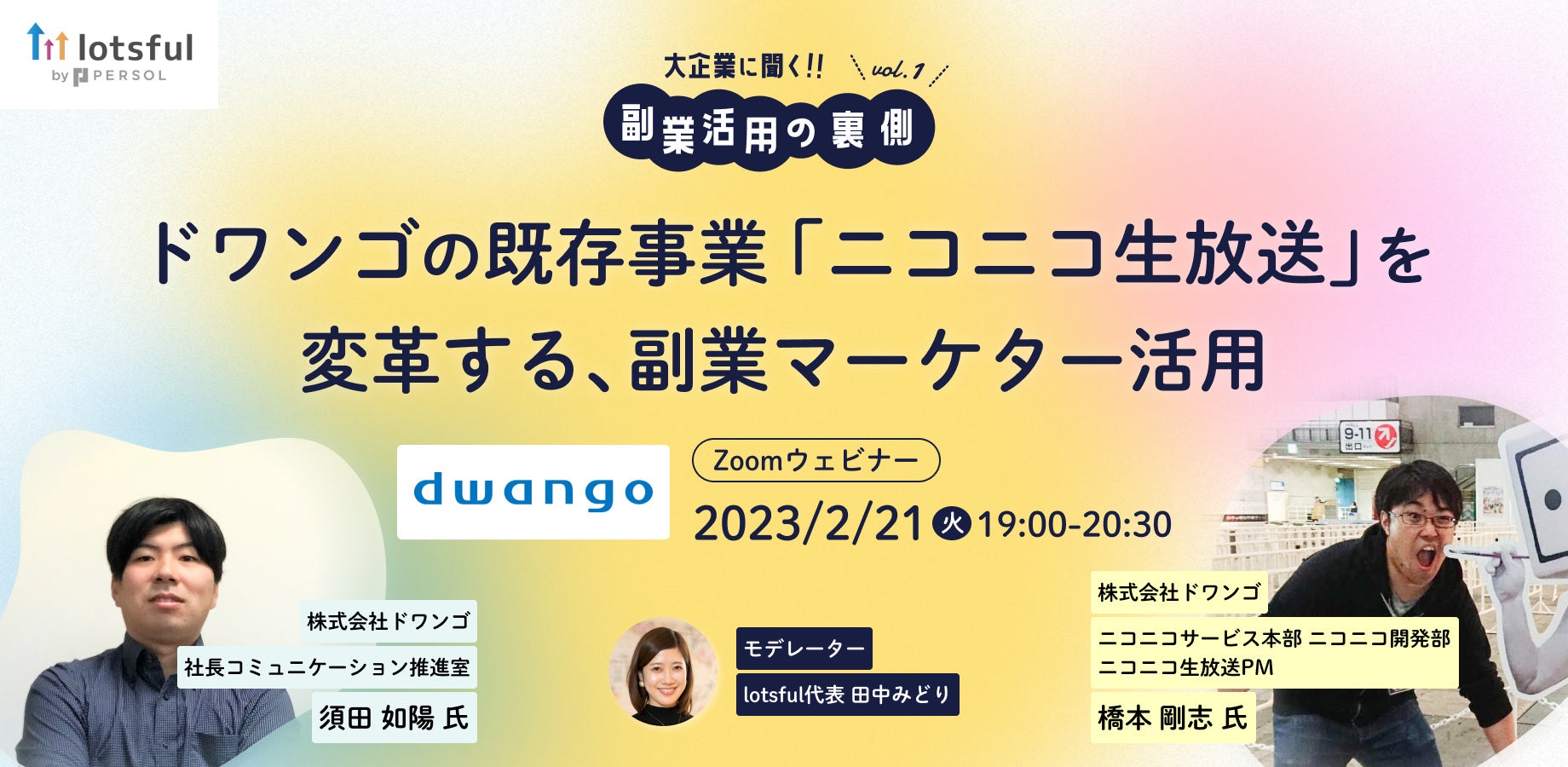 副業人材マッチングサービス『lotsful』、新シリーズセミナー企画「大企業に聞く!副業活用の裏側」開始!第 1 回はニコニコ生放送のドワンゴが登壇