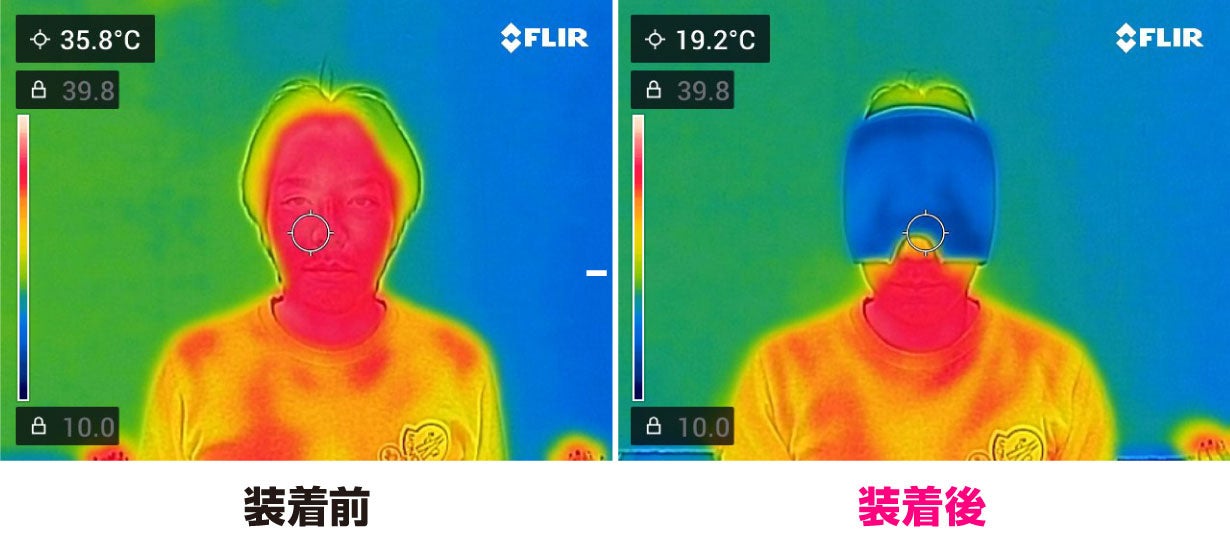 装着するだけで前面のゲルが熱を吸収し、体温との温度差はなんと-16.6℃!ひんやり感を与えます。