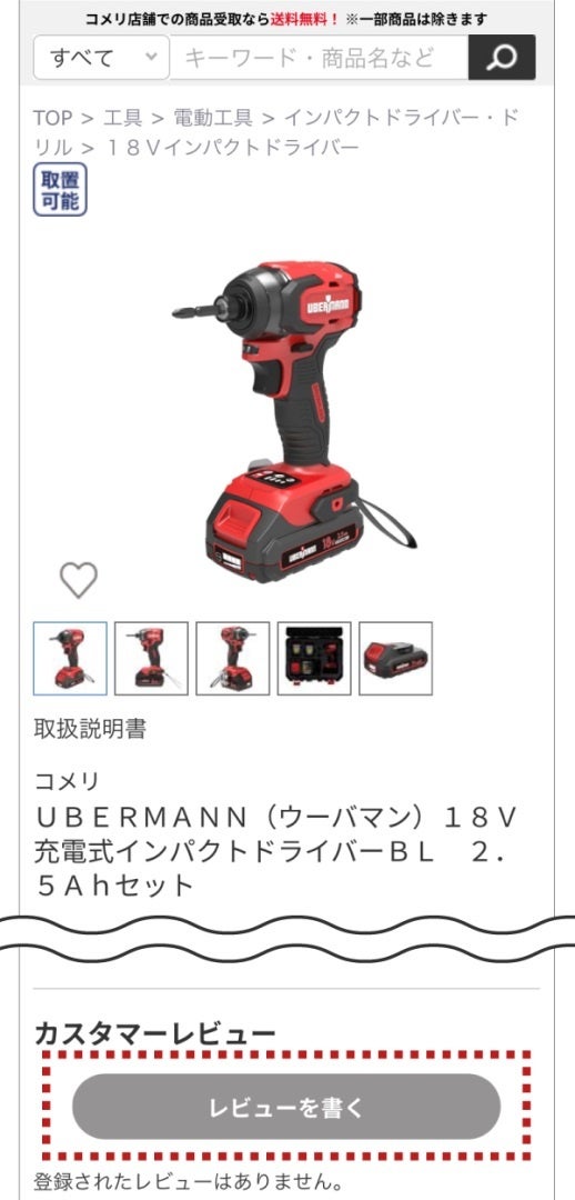 コメリのオリジナル電動工具シリーズ「UBERMANN(ウーバマン)」対象商品を購入後、レビュー投稿をしていただくとコメリで使えるポイントが当たる!UBERMANNレビューキャンペーン