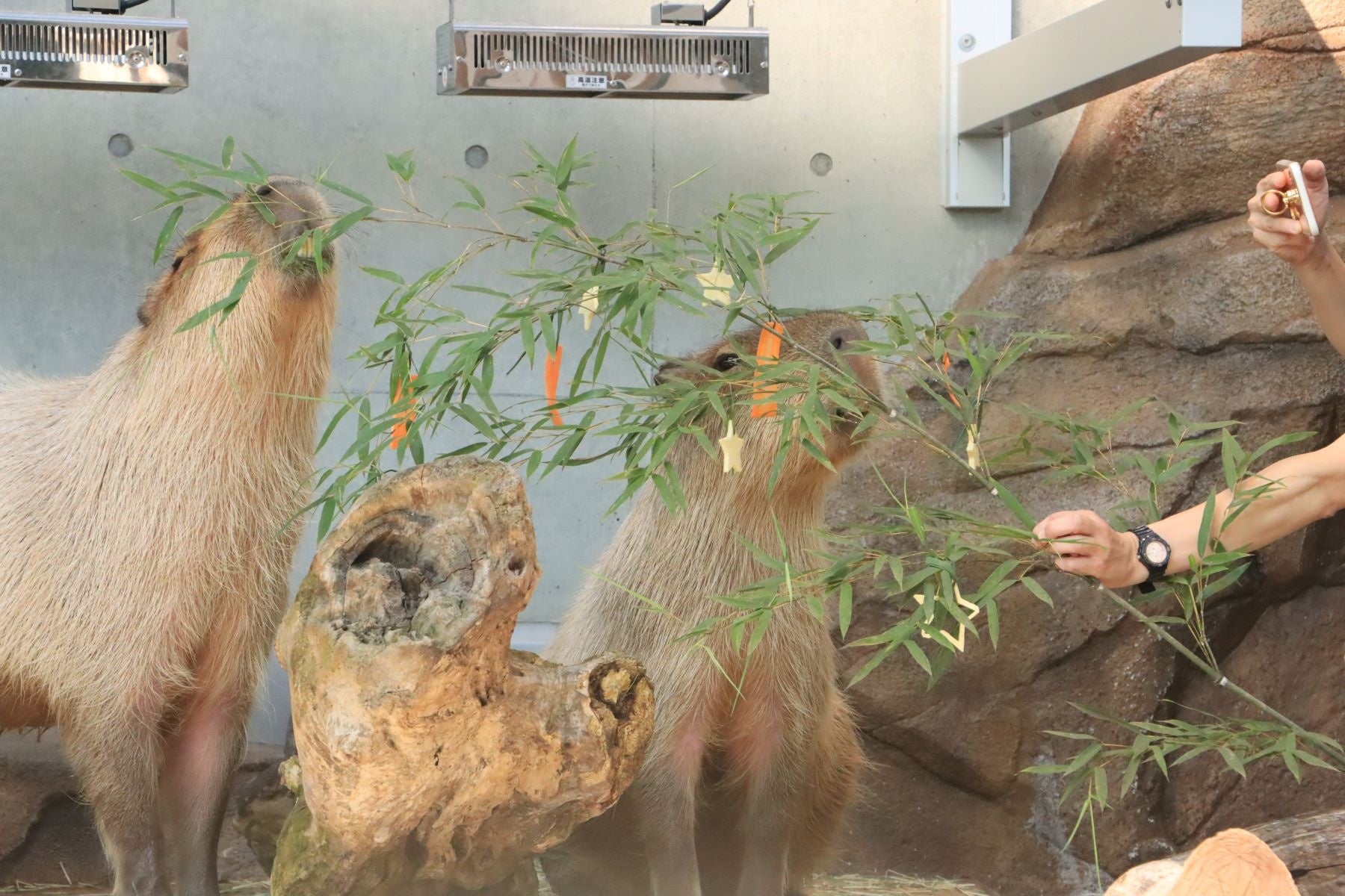 また、七夕イベントとして、竹や野菜を食べるカピバラに孟宗竹にくくりつけた短冊型の野菜を与えながら、飼育員が生態について解説する「七夕限定!カピバラのモグモグタイム(餌やり解説付)」も同日に行います 。
