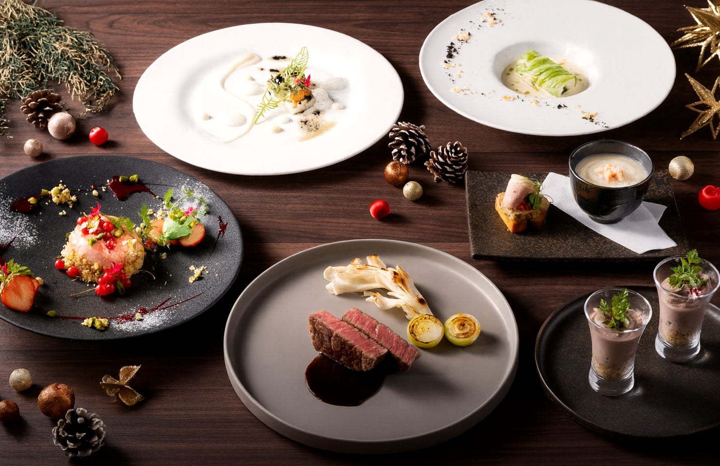 2025年のクリスマスは、濃厚なフォアグラのテリーヌやみかわ和牛のサーロインなど、特別な日に相応しい逸品をご用意いたしました。東地中海のエッセンスを取り入れて仕上げた美食をご堪能ください。また、夜景を楽しめる窓側確約のプランや、ワインペアリング付きプランなど、多彩なプランもご用意しております。