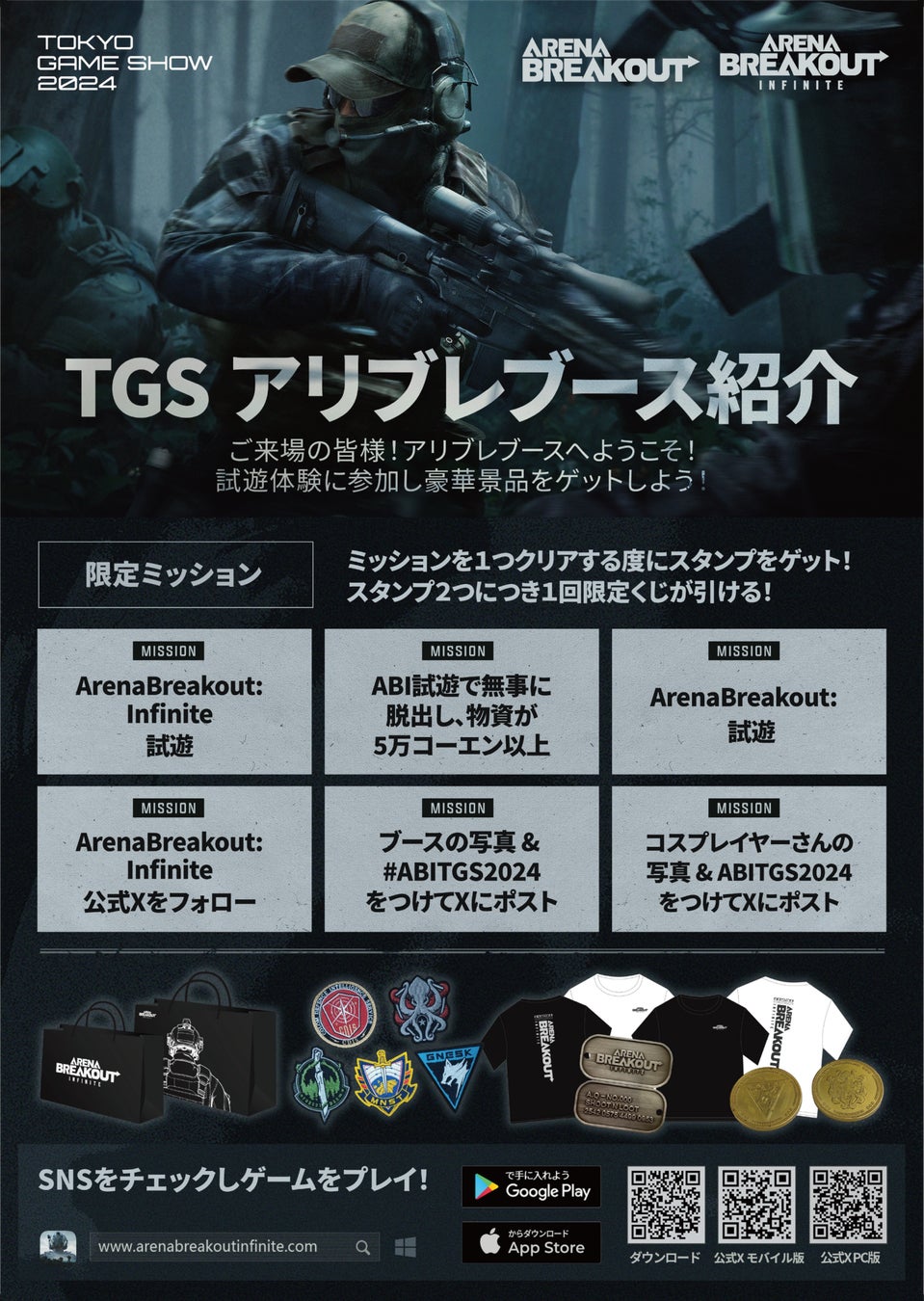 Tencent Gamesの開発スタジオ、MoreFun Studios Groupが手掛ける略奪系タクティカルスマホFPS『Arena Breakout』(以下、アリブレ)と、そのPC版である『Arena Breakout: Infinite』(以下、アリブレPC)が、2024年9月26日(木)から9月29日(日)まで幕張メッセにて開催される「東京ゲームショウ2024」(以下、TGS2024)に出展します。