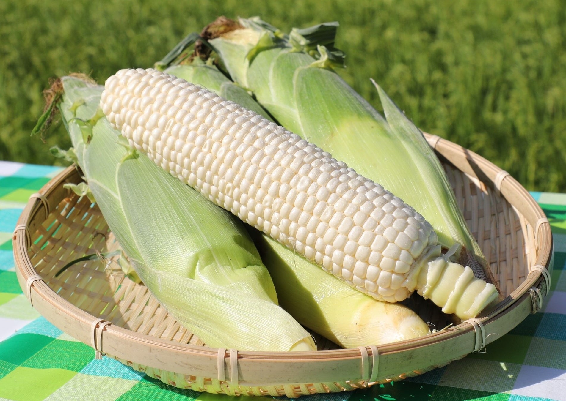 まるでシルクのようなツヤの真っ白な実のトウモロコシ、この甘みをぜひ味わってみてください。