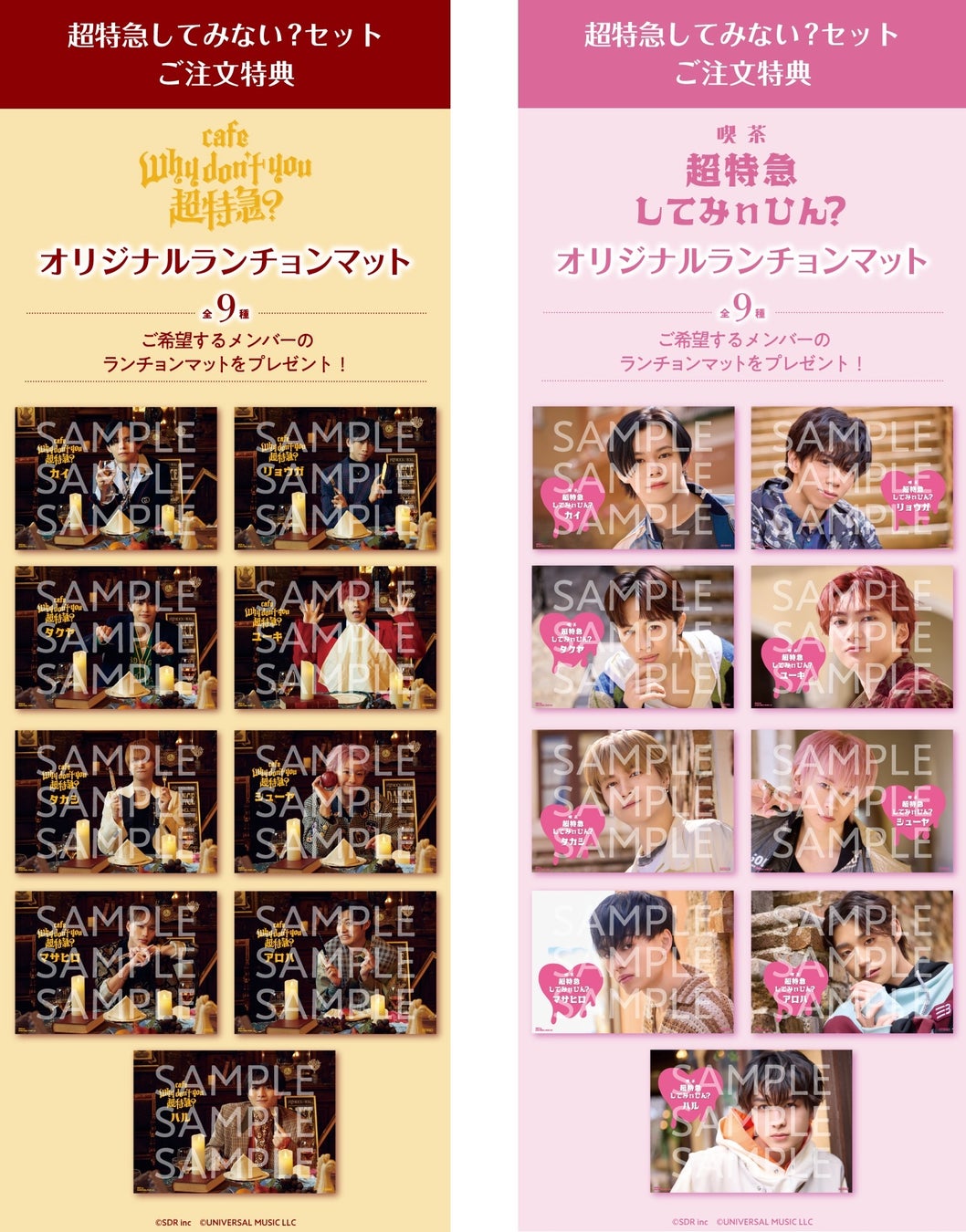 ■セットメニュー注文特典:フード&デザート3種のうち1種、メンバードリンク9種のうち1種を自由に組み合わせてご注文いただいた方に、ご希望するメンバーの「オリジナルランチョンマット(東京・大阪/各9種)」を1枚プレゼント。
