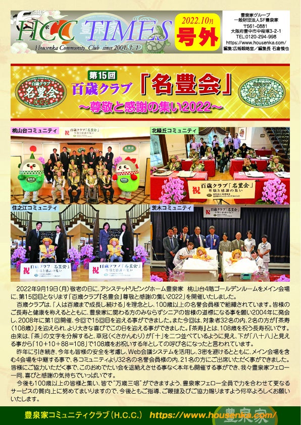 ◆HCCTIMES 2022年10月号外 『第15回百歳クラブ「名豊会」~尊敬と感謝の集い2022~』