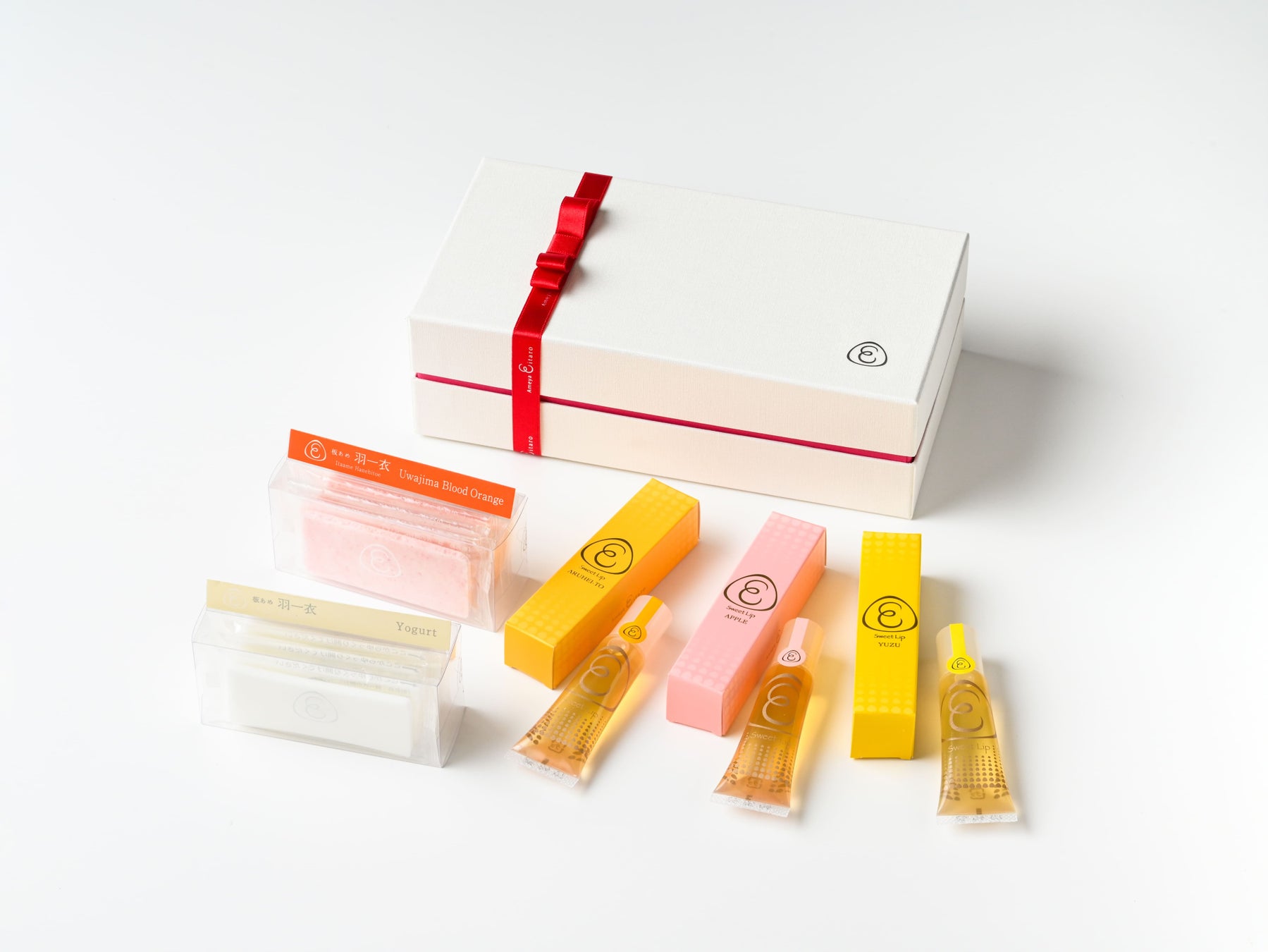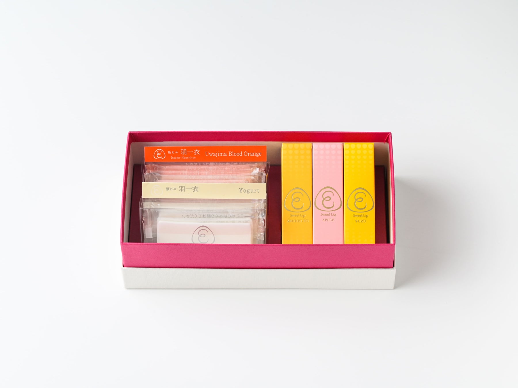 ・内容品:板あめ羽一衣「キャラメル」「ストロベリー」「ヨーグルト」「宇和島ブラッドオレンジ」