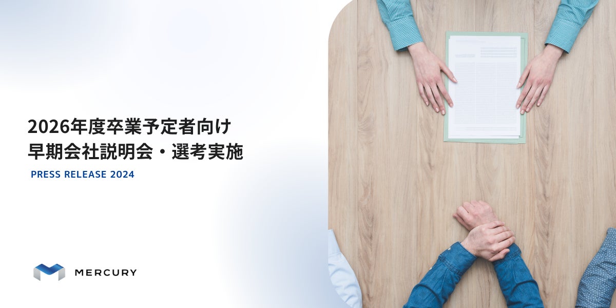 多様な人材の登用・育成を通して日本社会の未来をつくる人材サービス会社、株式会社マーキュリー(本社:東京都新宿区、取締役社長:秋間 剛、以下「マーキュリー」)は、2024年11月より2026年度卒業予定の学生を対象とした早期会社説明会および選考を実施しますのでお知らせいたします。