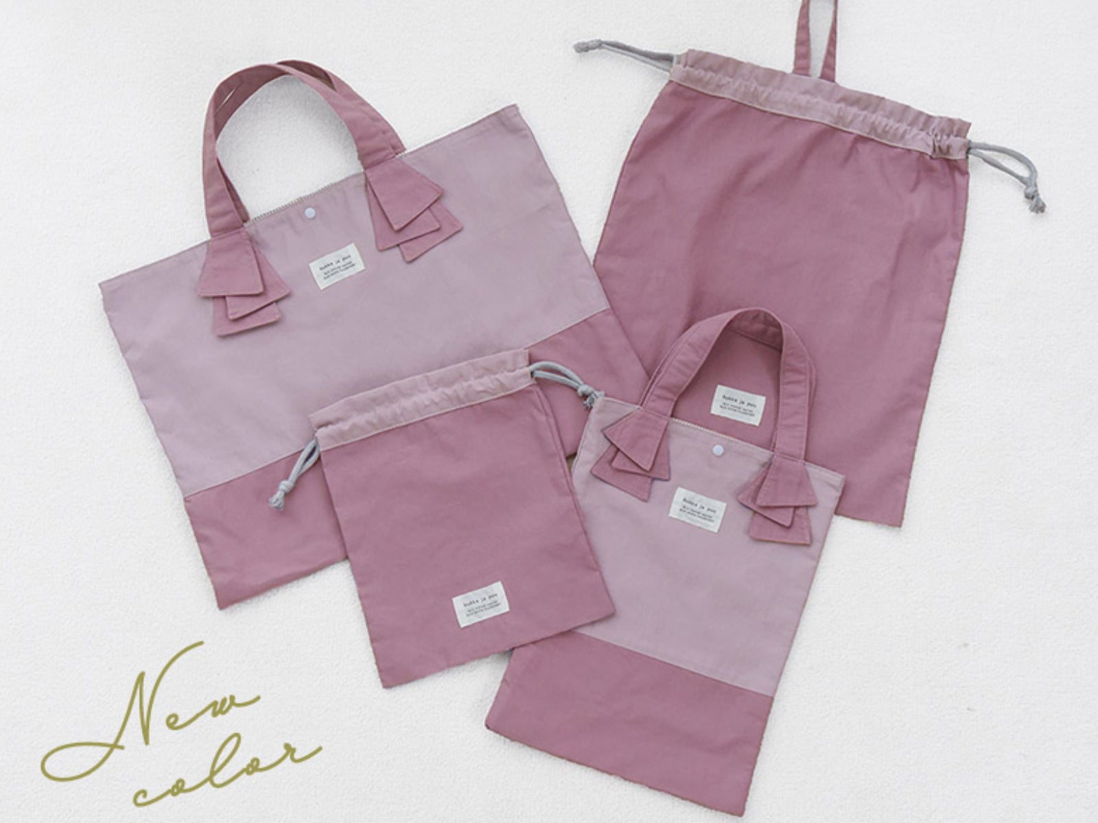 セットではレッスンバッグ・シューズバッグ・巾着大・巾着小が一度に揃います。