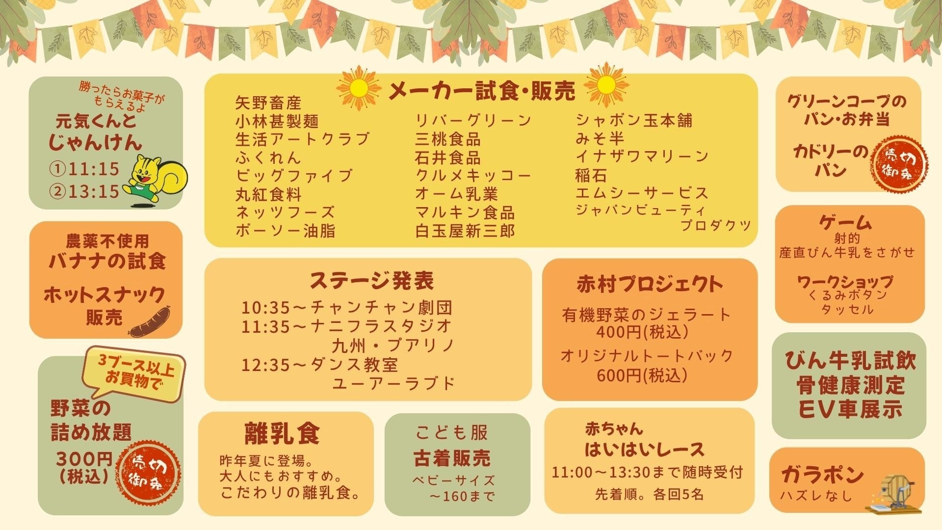 「農薬不使用バナナの試食」「ホットスナック販売」「赤村プロジェクトによる有機野菜ジェラート」「こども服古着販売」など、グリーンコープならではの企画も実施します。