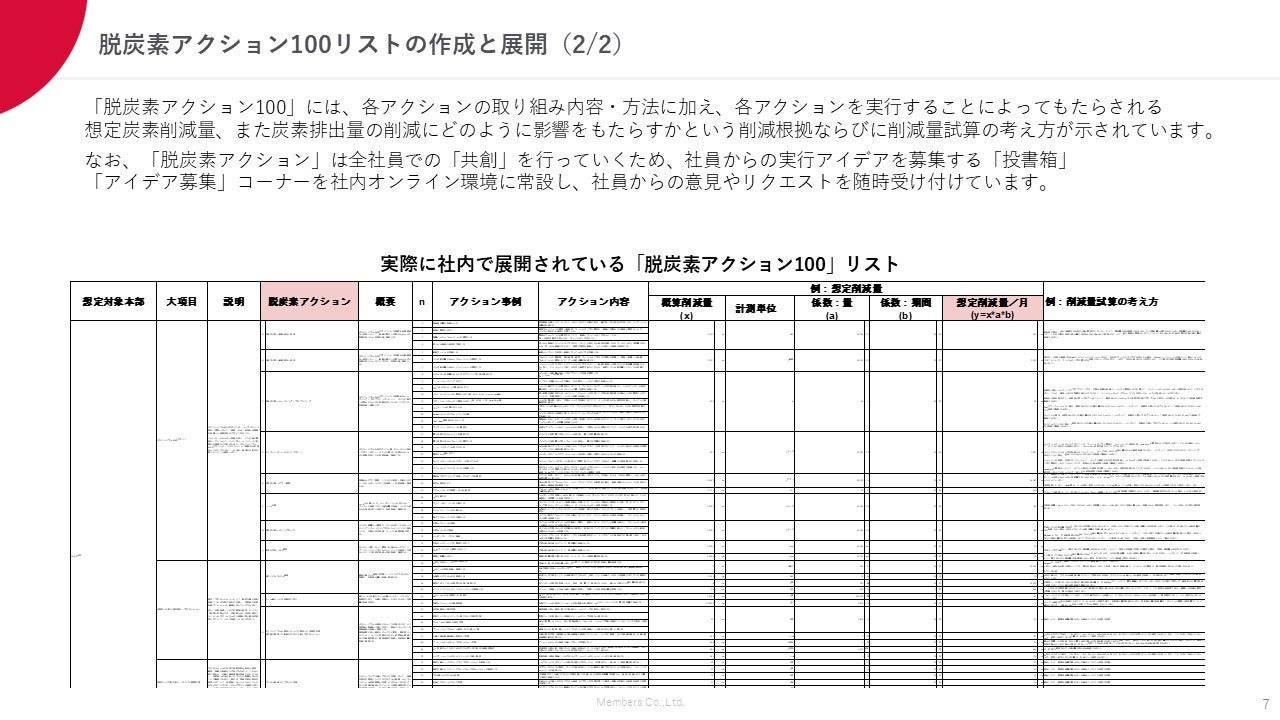 「脱炭素アクション100」実施レポート:https://www.slideshare.net/Memberscorp/100-5819