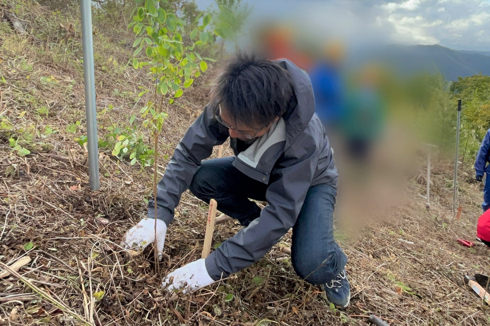 また、この他メンバーズの脱炭素社会の実現に向けた2023年の取り組みをまとめました。10月には植林による森林保全のために「メンバーズの森」を岩手県住田町にて開始し、代表取締役社長 髙野明彦と当社社員が現地で植樹を行いました。