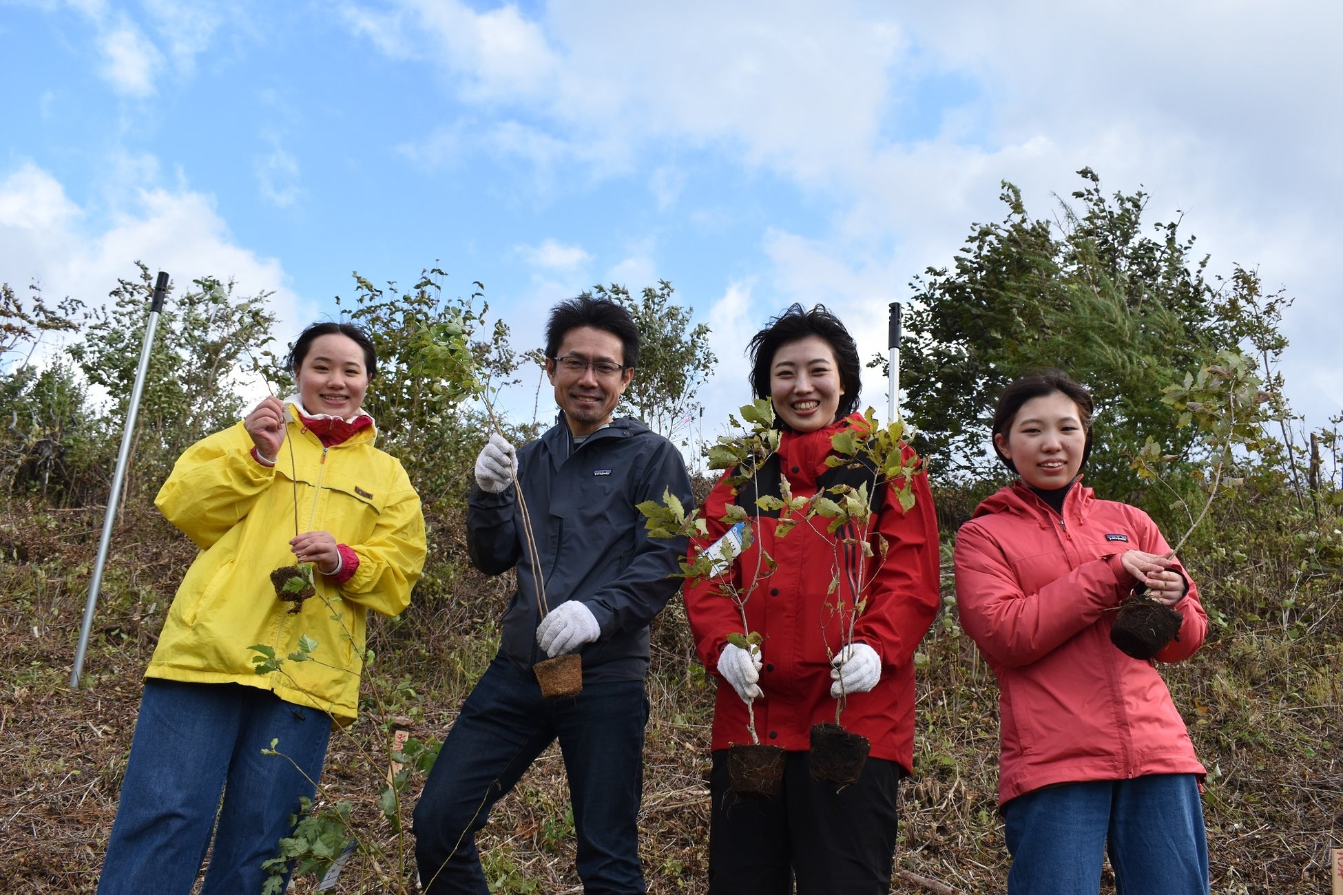 (植樹に参加した当社代表取締役社長 髙野と社員)