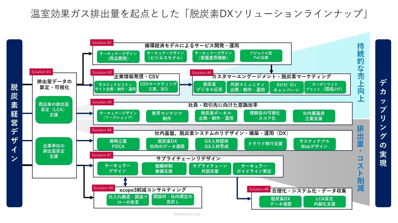 ・メンバーズ、企業・製品単位の温室効果ガス排出データをもとに売上向上・コスト削減を実現する「脱炭素DXソリューション」を提供開始(2023年8月29日)