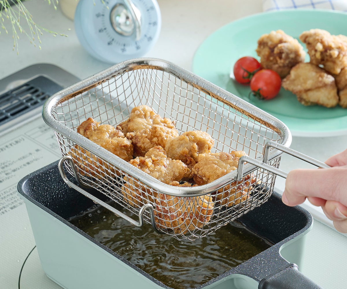 少ない油でサクッと手軽に揚げ物料理!「Toffy 角型揚げ鍋〈フライバスケット付き〉」発売