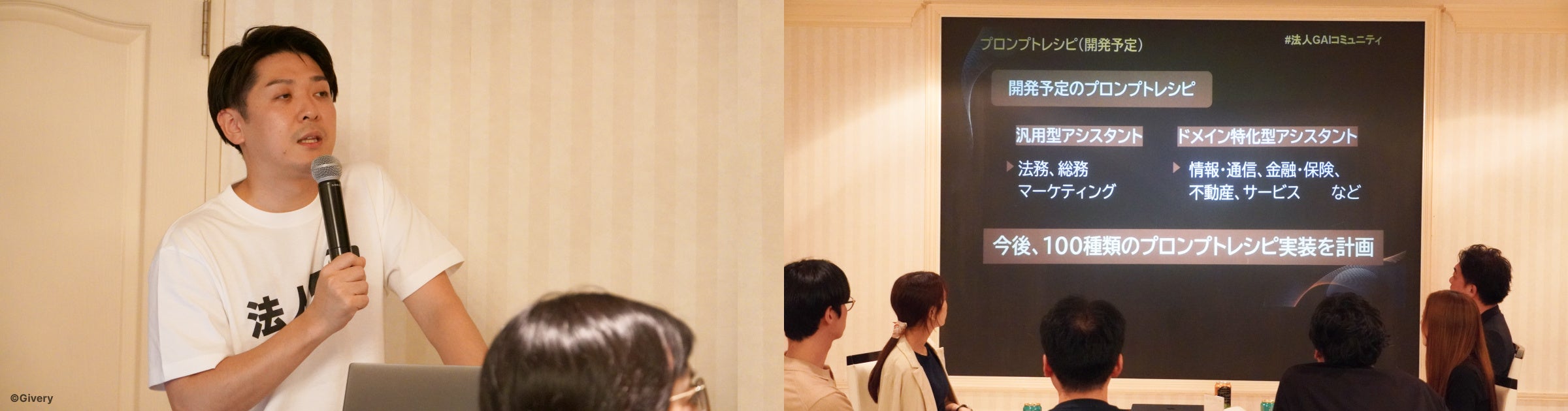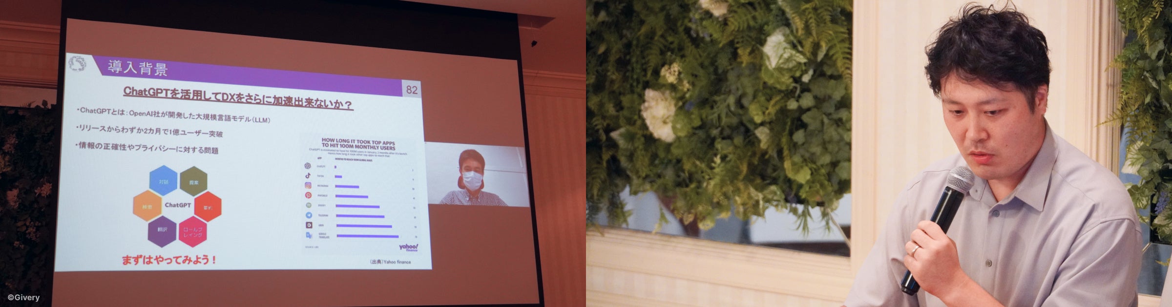 会の中盤では、法人GAI導入の3社様から、社内の活用事例と、今後の展望についてお話を頂戴しました。
