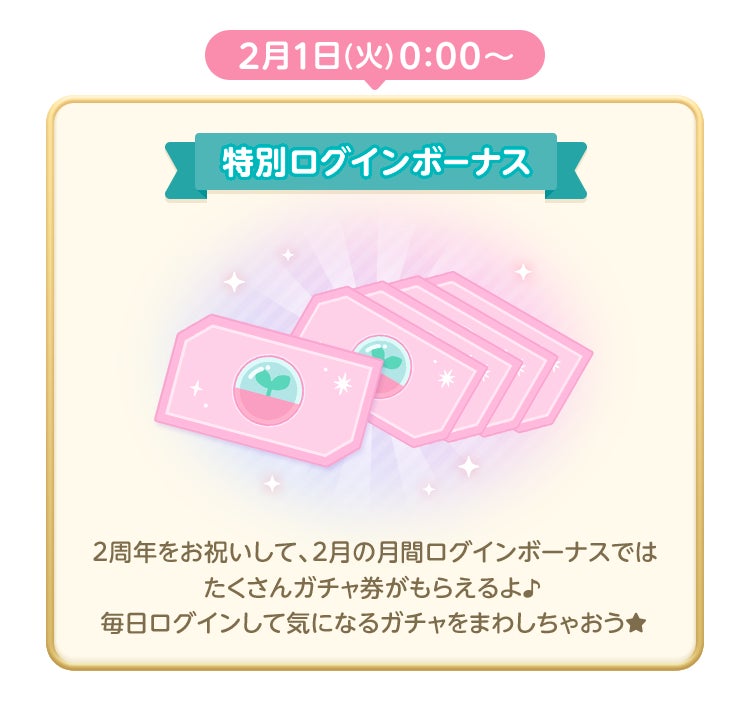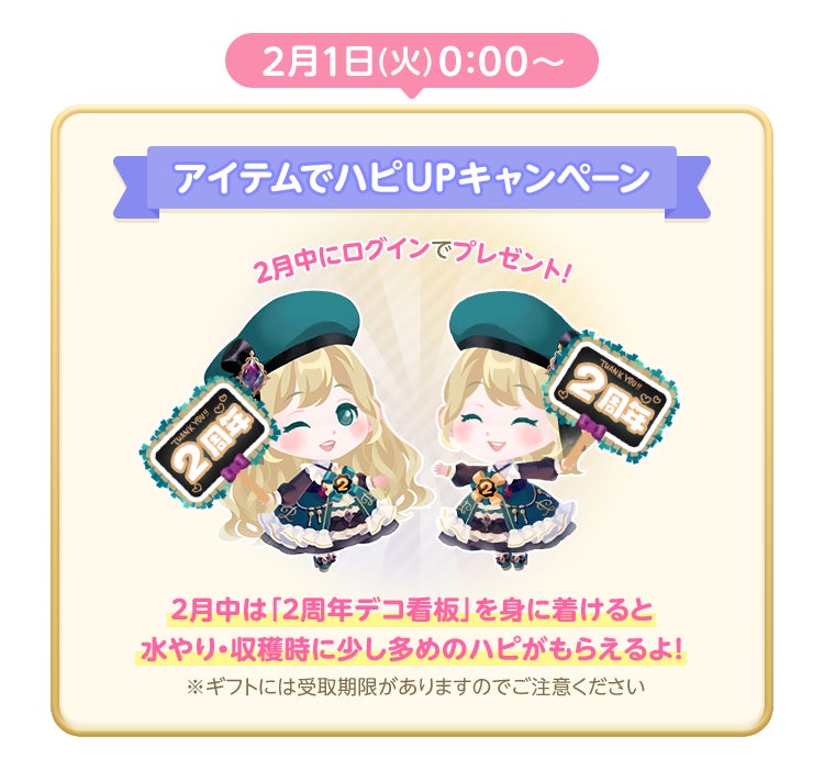 ■2周年ありがとう!ガチャ券・ハピ・限定アイテムがもらえるキャンペーンを多数実施!