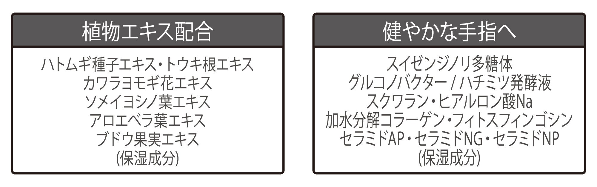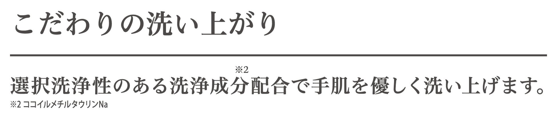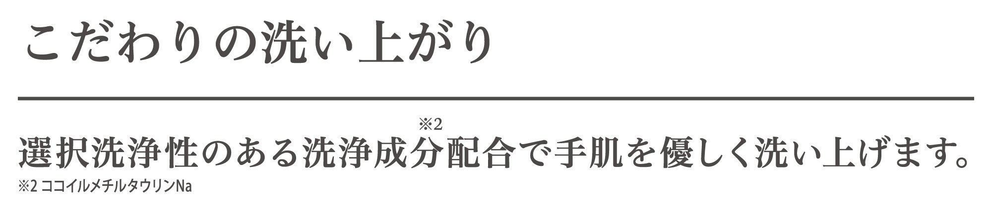 手肌に必要な油分や水分は残し、不要な汚れはしっかりと落とす選択洗浄性のある成分を配合しました。