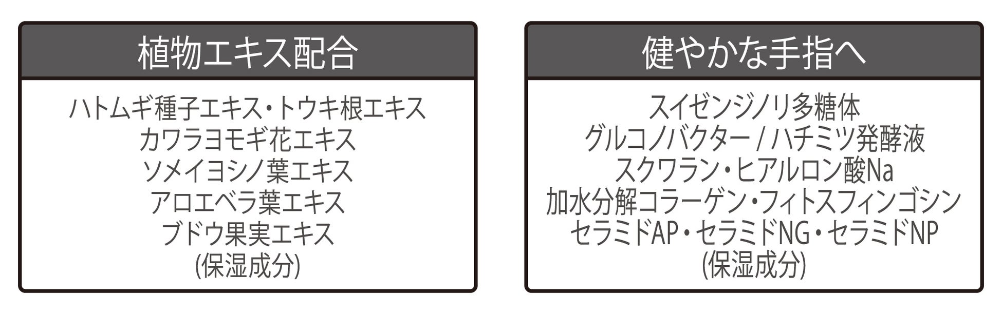 香りに包まれて、手指のハンドケアも心地よい気分でお楽しみいただけます。