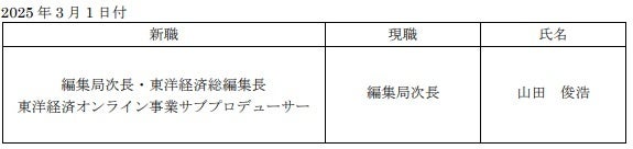 株式会社東洋経済新報社(本社:東京都中央区、代表取締役社長:山田徹也)は、総編集長の就任について下記のとおりお知らせいたします。