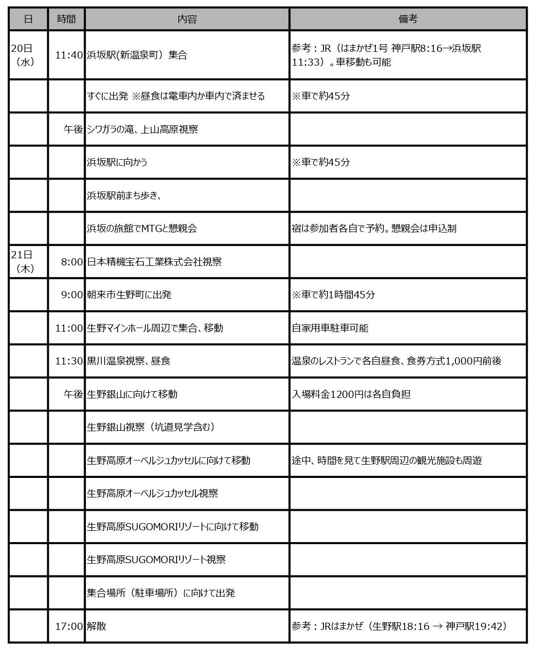 【日程】①11月20日(水)~21日(木) フィールドワーク(1日目:新温泉町、2日目朝来市)