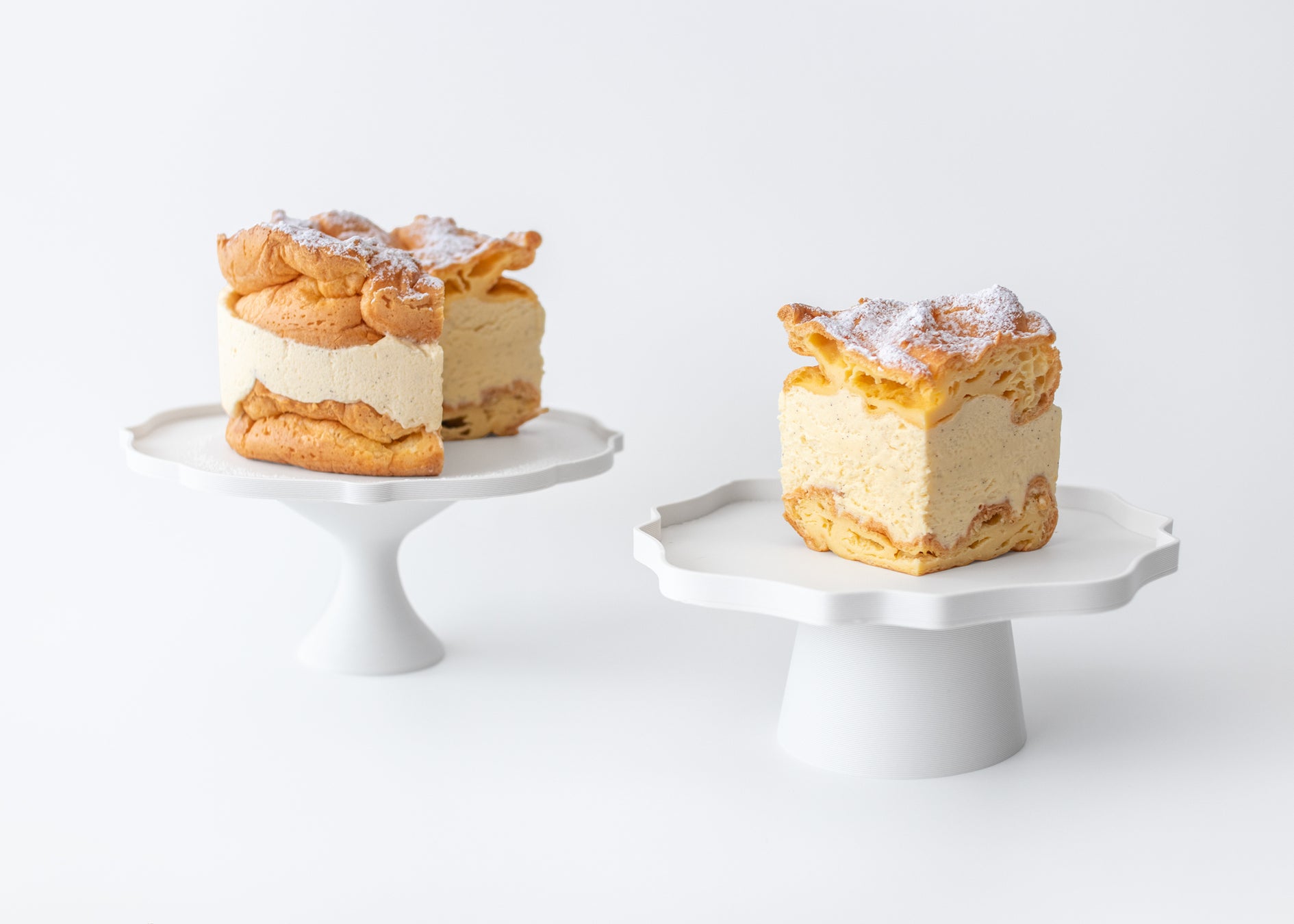 カノーブルはは、このポーランドの伝統的なスイーツである「カルパトカ」を、現代の嗜好に合わせて食感や口どけを革新的に進化させました。特徴は何と言っても、口の中でとろけてまとわりつくようなクリームのテクスチャー。