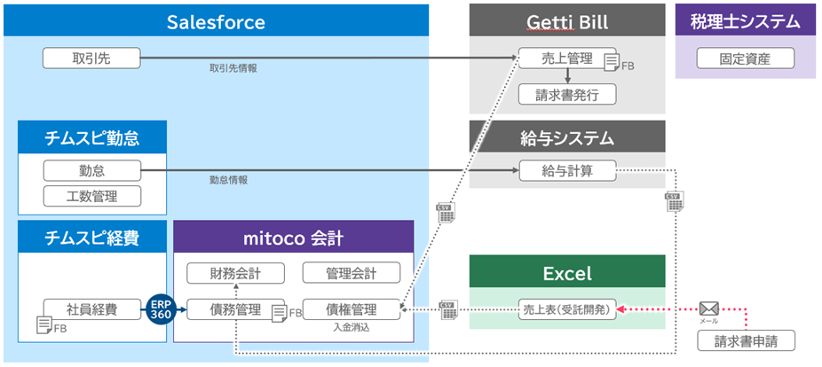 リンクステーションでは営業支援システムとして、また勤怠管理・経費精算システムの基盤としてSalesforceを使用していることから、同じくSalesforceを基盤とする「mitoco 会計」の導入を決定。基盤の統一によりデータの一元化が実現し、リアルタイムでの売上状況の把握や分析による迅速な経営判断が可能になります。また、「mitoco 会計」の債権・債務管理機能を利用することで、これまでの手作業での転記、多重入力が不要になり業務効率化が向上します。Salesforceの強固なセキュリティや日本企業の実務に沿ったワークフローの活用により、外部監査や将来的なIPO審査にも耐え得るガバナンス、セキュリティ強化を実現します。