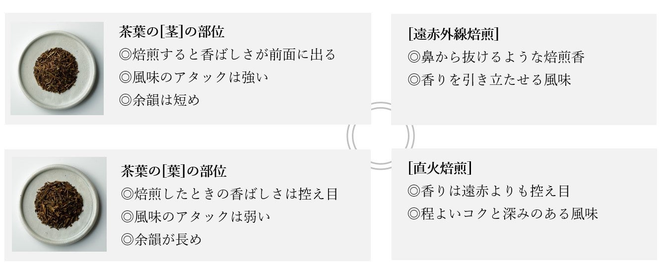 ほうじ茶の風味を左右する、茶葉の部位と焙煎方法。