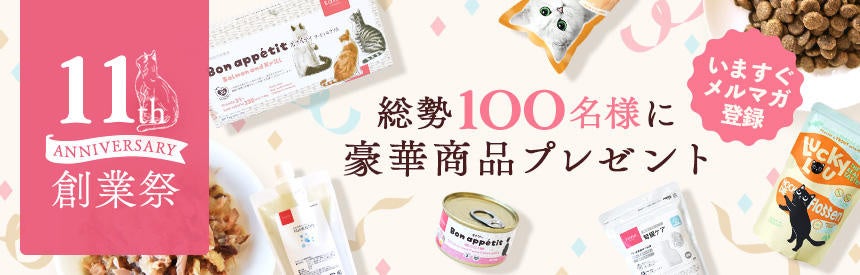 プレミアムキャットフードメーカー「tama」(運営:マーケティングパートナー株式会社、本社所在地:東京都新宿区、代表取締役社長:権田真司、Tel:03-6772-8194、https://www.tamaone.jp/)は、4月22日に迎える「創業11周年」を記念し、4月1日(火)より大型キャンペーン「創業祭」を開始いたします。