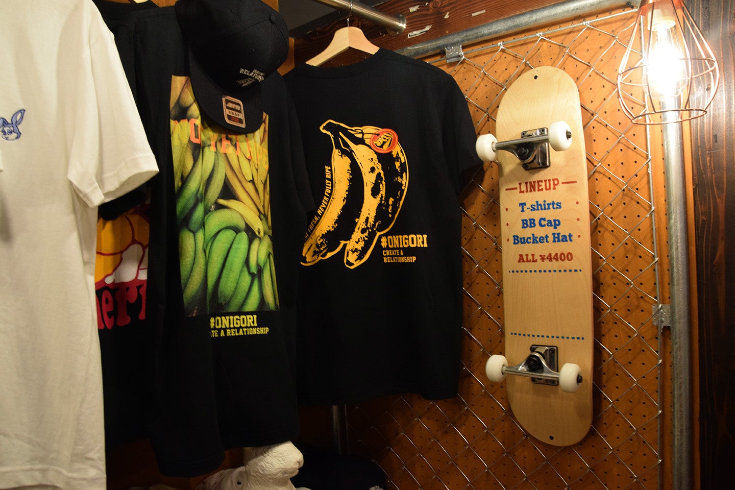 大人の溜まり場として、店内はスケボーや趣味の工具が飾られるカリフォルニアガレージを意識しています。「ダベる」居心地の良さを考えて座席はゆったりめに。