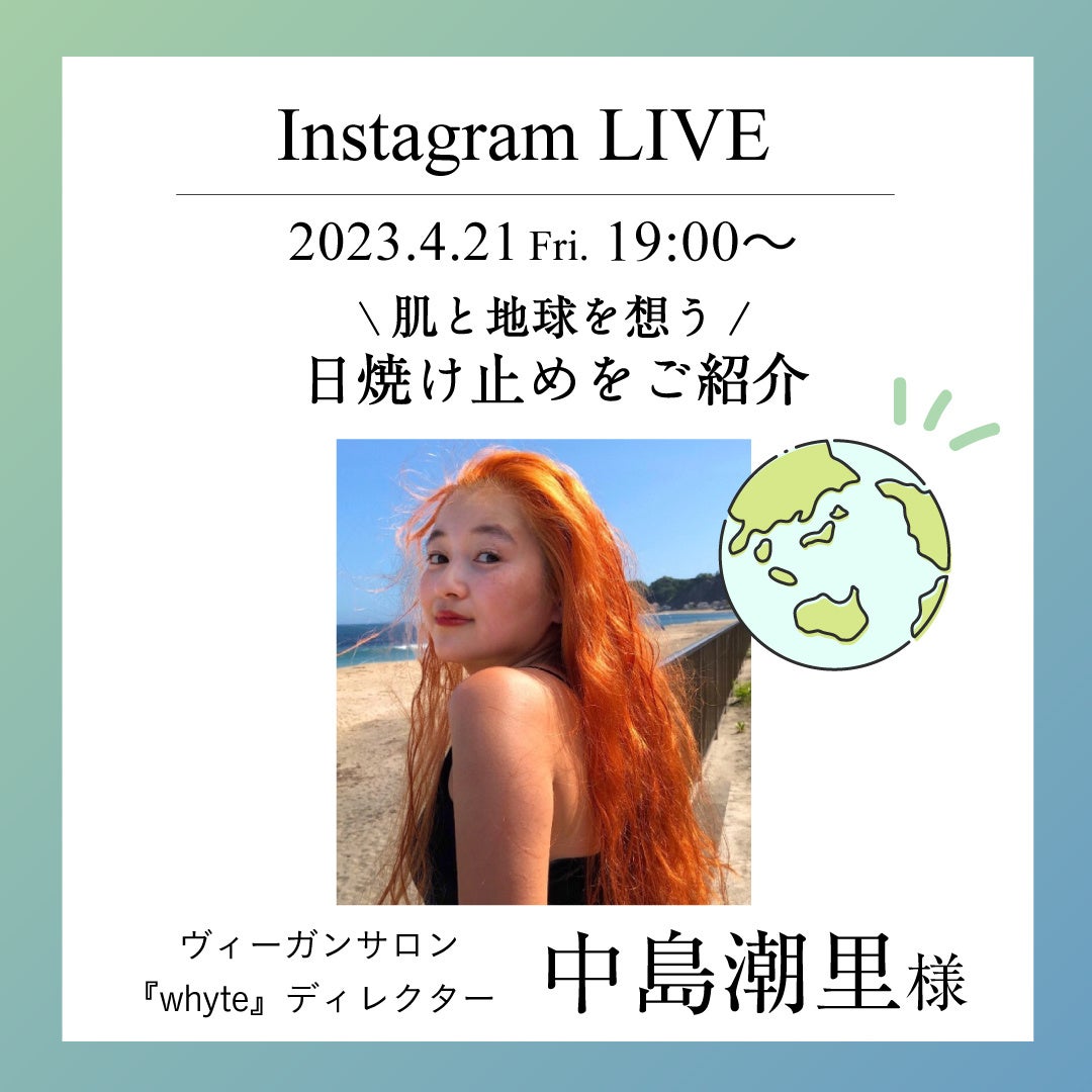 4/21(金) 19時00分よりVegan Beauty Salon"whyte”ディレクターの中島潮里さんをゲストにお迎えし、インスタグラムライブを開催いたします。