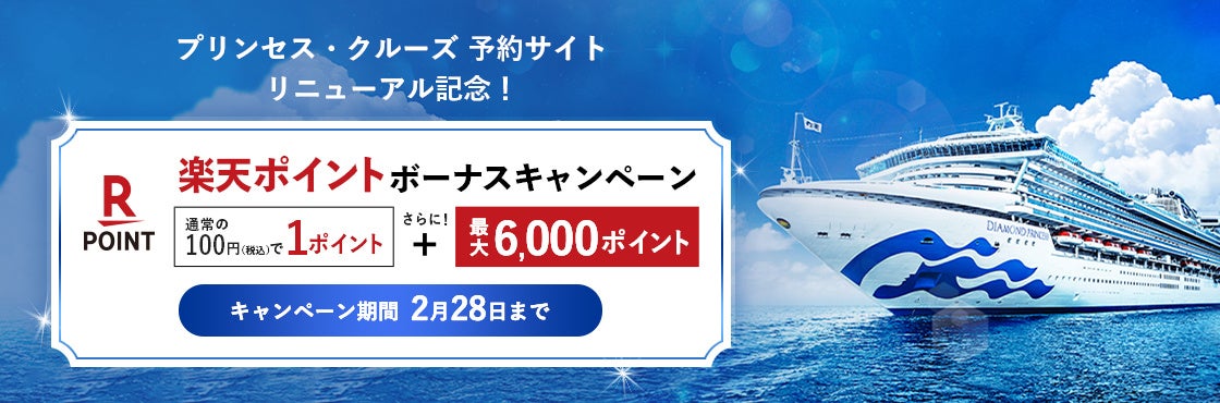 プリンセス・クルーズ、予約サイトリニューアルを記念し2月15日(木)より「楽天ポイントボーナスキャンペーン」を実施