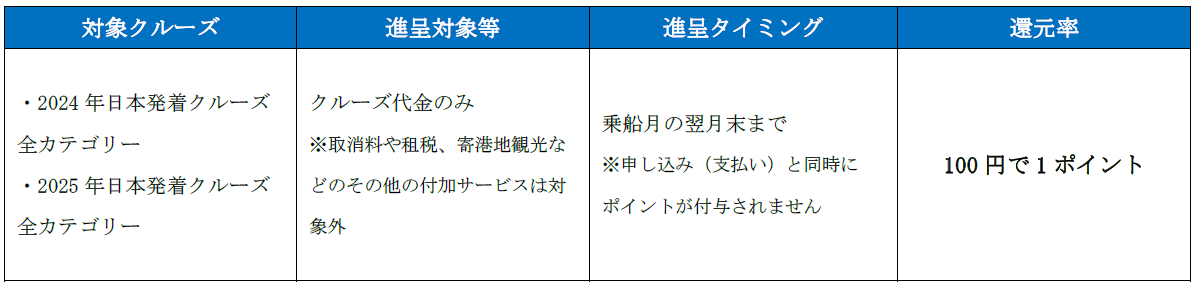 対象コース:2024年日本発着クルーズ全コース・2025年日本発着クルーズ全コース